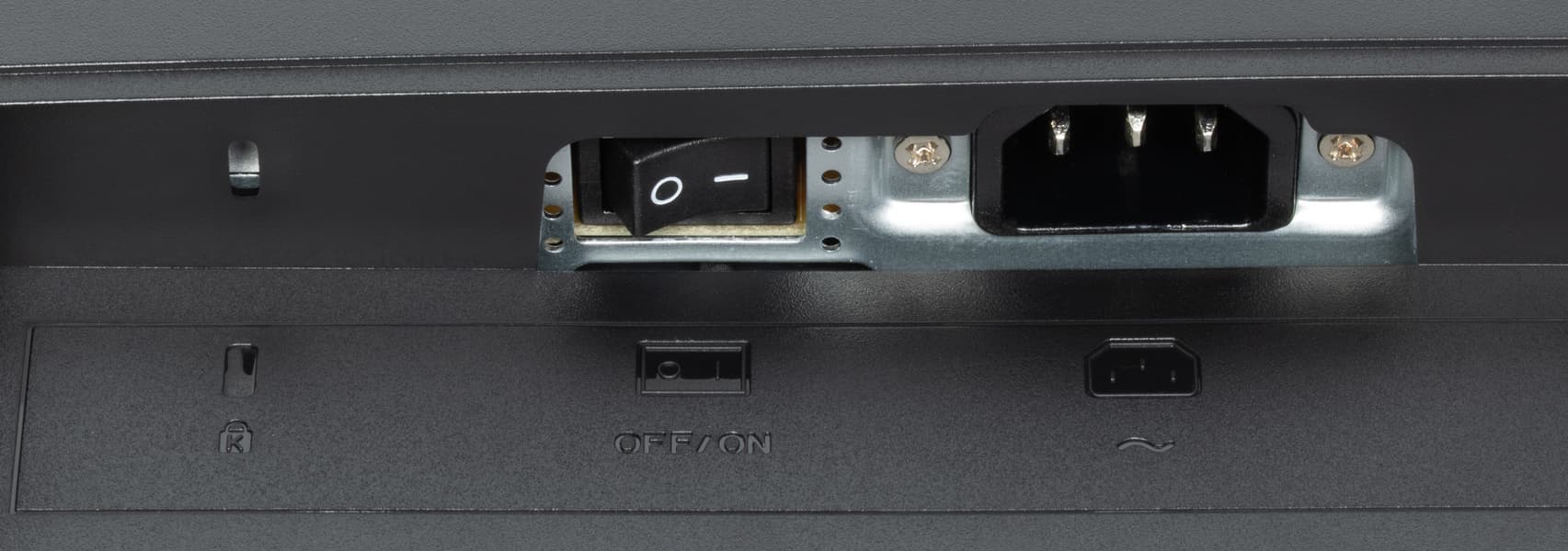В режиме ожидания монитор потребляет порядка 10 Вт, что очень много, а в условно выключенном состоянии — 0,3 Вт. Механический выключатель полностью отключает монитор от сети.