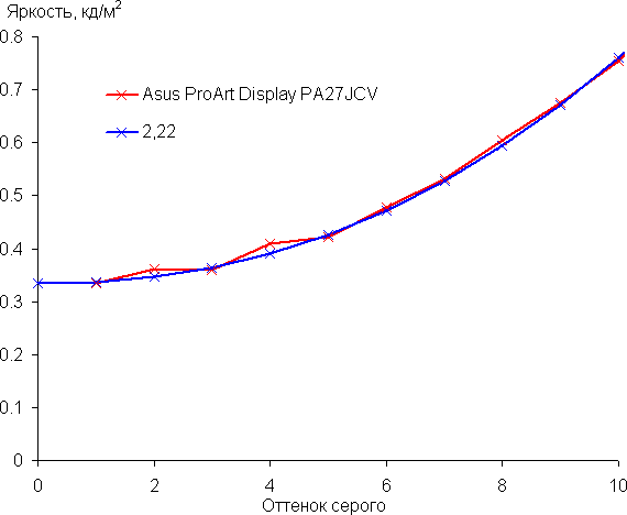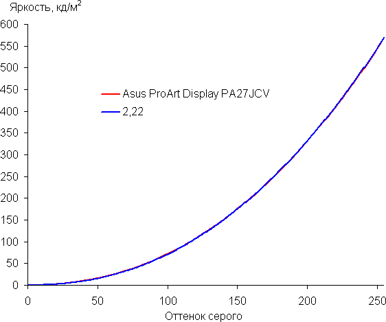Аппроксимация полученной гамма-кривой дала показатель 2,22, что очень близко к стандартному значению 2,2, при этом реальная гамма-кривая мало отклоняется от аппроксимирующей степенной функции: