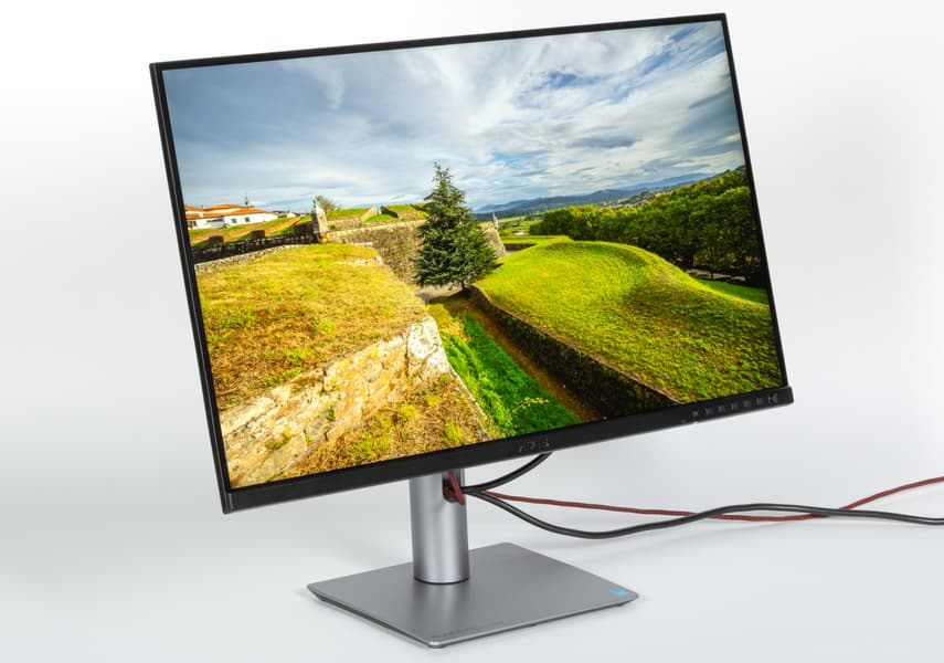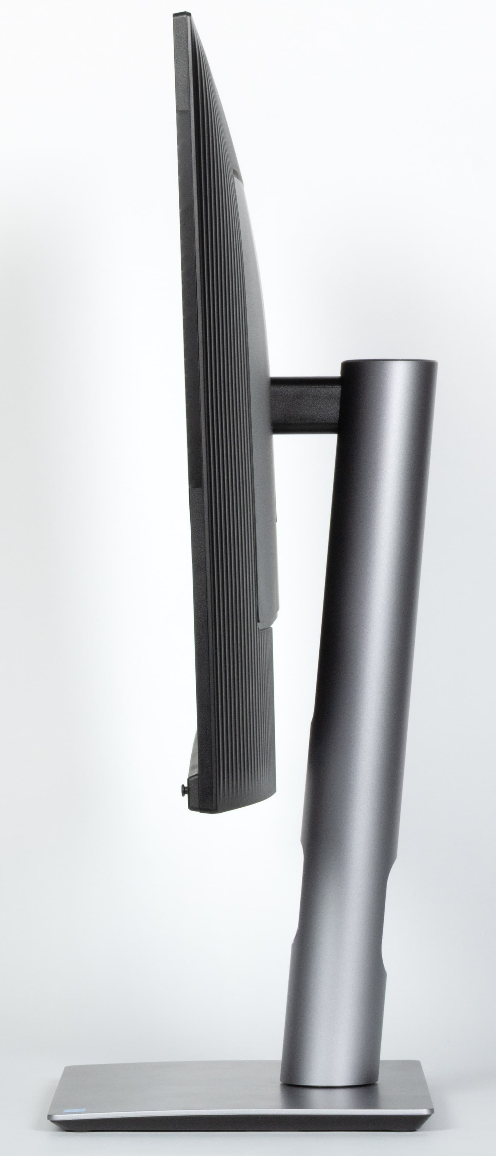 Многочисленные вентиляционные решетки сзади и на торце ниши с разъемами способствуют охлаждению внутренностей монитора. Где-то за задней панелью находятся два встроенных громкоговорителя.