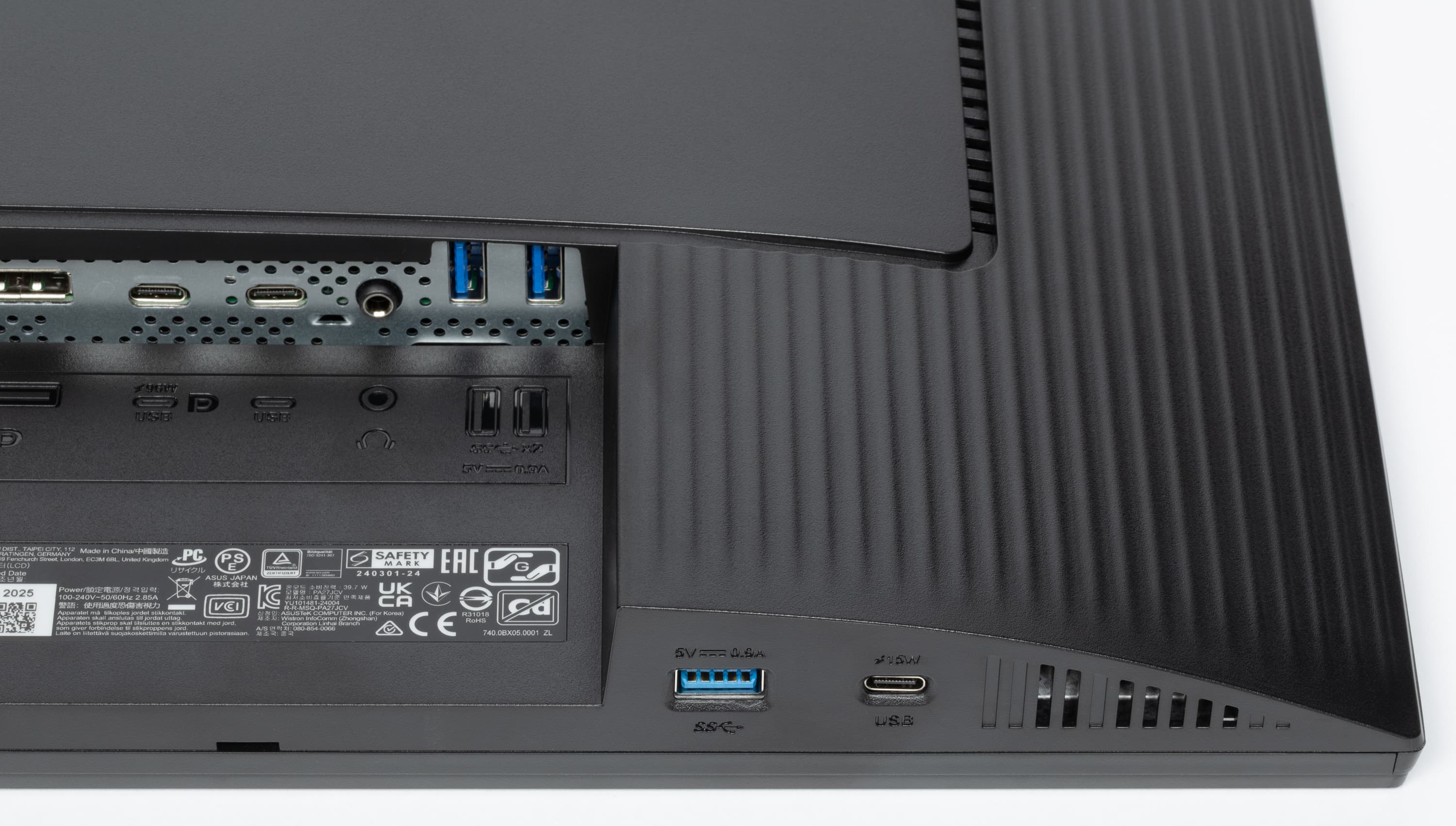 Это реализует функцию KVM — к монитору по USB можно подключить клавиатуру и мышь (а можно и накопитель), чтобы затем их использовать с двумя источниками видеосигнала, например, с ПК и ноутбуком, или с ПК и планшетом. Затрудняет использование функции KVM очень долгое переключение между источниками, это занимает порядка 11 секунд. Порт USB типа C (который с DP Alt Mode) поддерживает подачу питания на подключенное к нему устройство с заявленной мощностью до 96 Вт. Таким образом, данный монитор можно использовать в качестве полноценной док-станции для работы с ноутбуком.