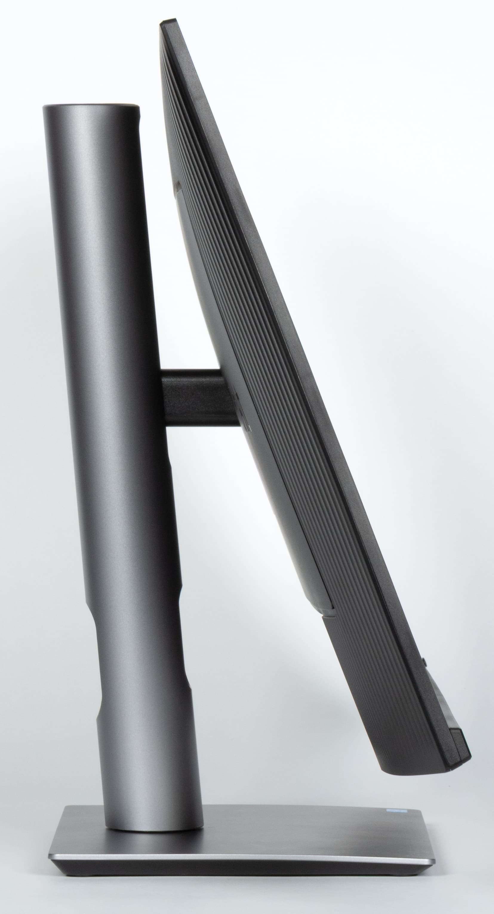 Стойка имеет фиксированную высоту, но подпираемый пружиной механизм с рельсовыми направляющими обеспечивает вертикальное перемещение узла, на который крепится блок экрана. В итоге экран можно установить на нужную высоту. Подставка позволяет наклонять блок экрана вперед от вертикального положения и больше наклонять назад, поворачивать вправо-влево, а также переворачивать в портретную ориентацию по и против часовой стрелки.