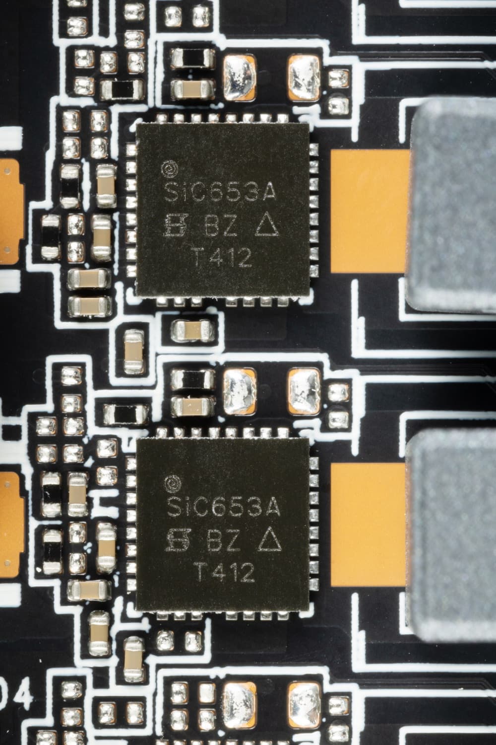 В преобразователе питания ядра используются транзисторные сборки DrMOS — SiC653A компании Vishay, рассчитанные на 50 А.