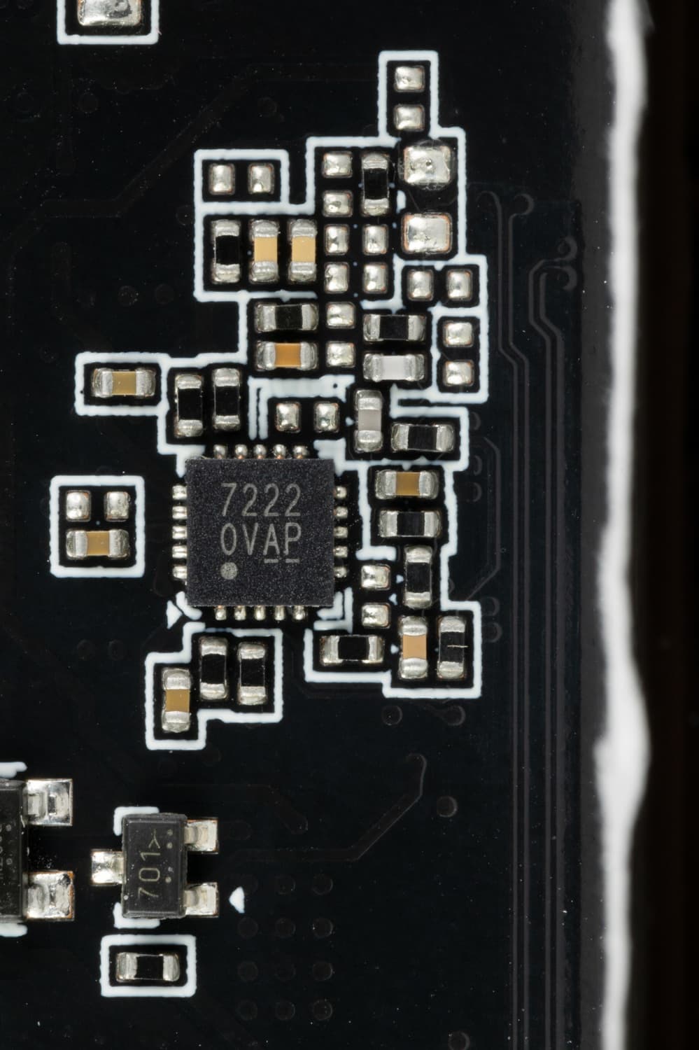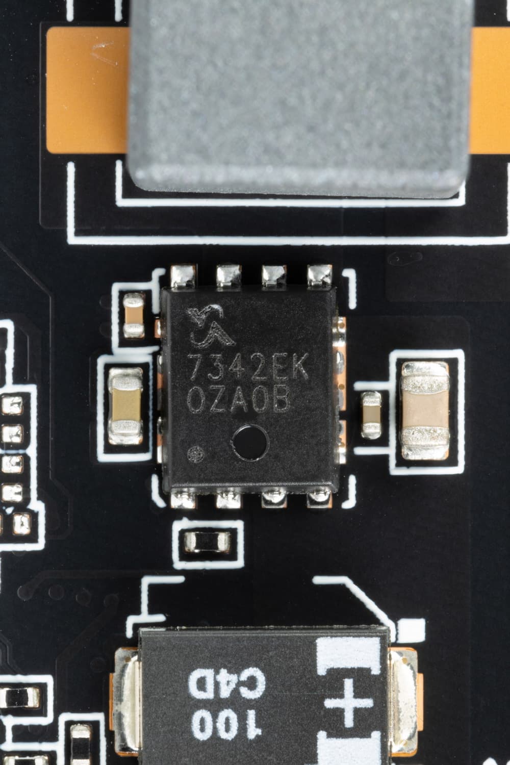 Питанием микросхем памяти управляет ШИМ-контроллер Niko Semi с ОЕМ-маркировкой 7222. Он расположен на лицевой стороне платы.