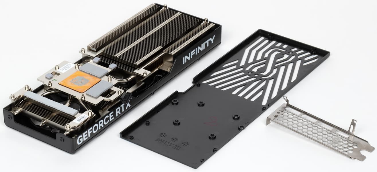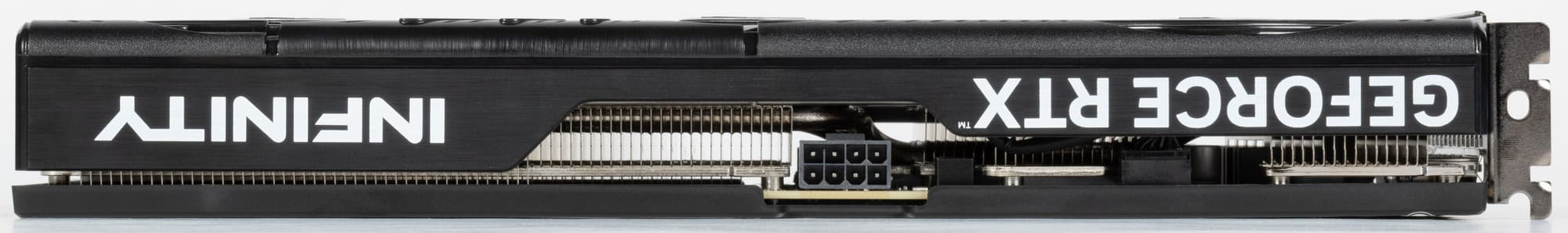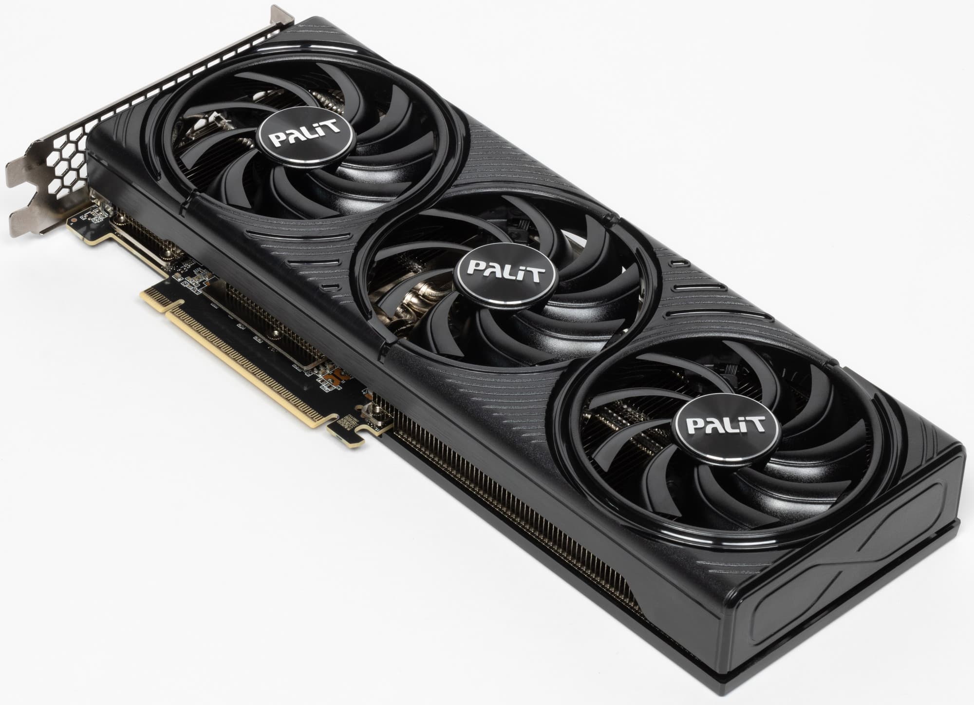 Palit GeForce RTX 5060 Ti Infinity 3 (16 ГБ) — сравнительно бюджетный ускоритель на базе GeForce RTX 5060 Ti, имеющий неброский дизайн и лишенный подсветки. Кулер сделан большим в длину (29 см), но укладывается в два слота по ширине, что может быть актуально для некоторых применений, в том числе в компактных ПК. Производительность карты сохранена на уровне референсной, а вот шум немного повышен. Карта имеет 8-контактный разъем питания версии PCIe 2.0 и стандартный набор видеовыходов: 3 DP 2.1b и 1 HDMI 2.1b.