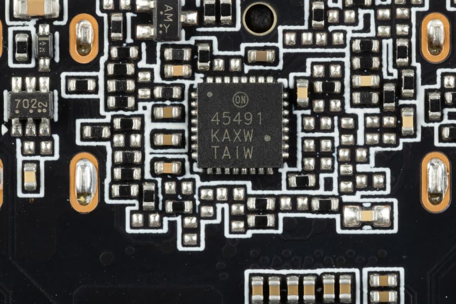 На оборотной стороны PCB имеется контроллер для мониторинга (отслеживания напряжений и температур) On Semi.