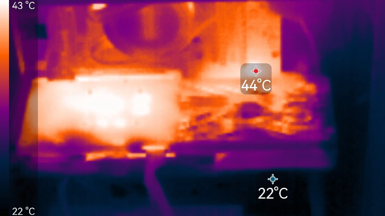 В режиме простоя в 2D температура была не выше 38,2 °C, вентиляторы не работали, уровень шума был фоновым (18 дБА).
