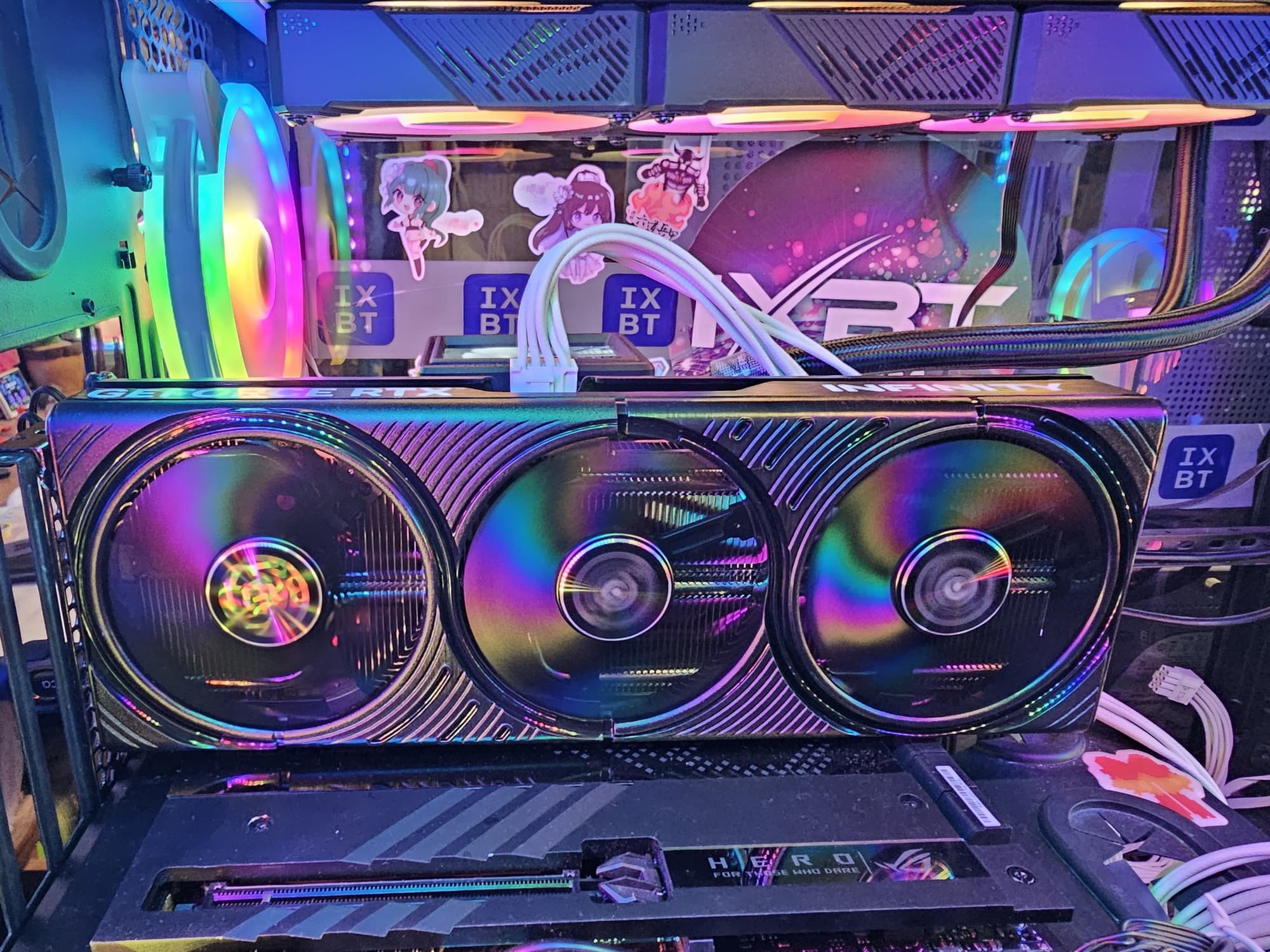 Карта имеет стандартный набор видеовыходов: три DP 2.1b и один HDMI 2.1b.
