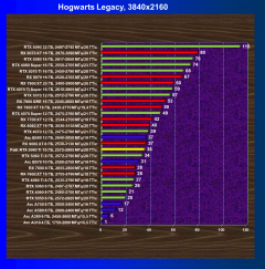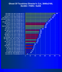 Рейтинг составлен по 10 тестам, в которых используется технология трассировки лучей и одновременно технология Nvidia DLSS, AMD FSR или Intel XeSS. Этот рейтинг нормирован по самому слабому ускорителю в данной группе — Arc A310 (то есть сочетание скорости и функций Arc A310 приняты за 100%).