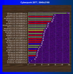 | 26 | RX 7800 XT 16 ГБ, 2430—2770 МГц/19,4 ГТ/с | 295 | 2212 | 75 000 |
