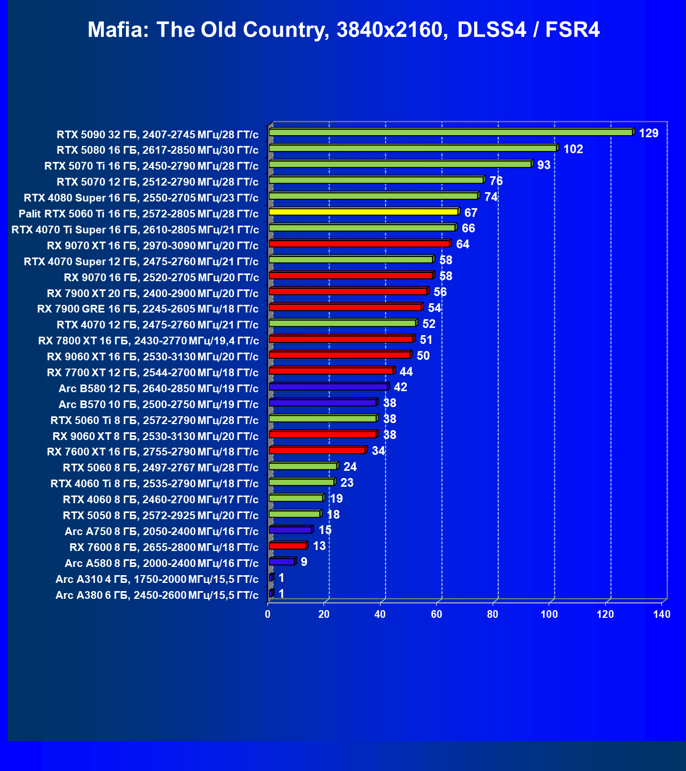 В данном рейтинге учитываются только результаты в играх без включения RT и DLSS, в целом в классических играх RTX 5060 Ti (16 ГБ) смотрится неплохо.