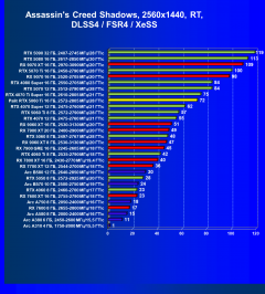 Если включить RT совместно с технологией DLSS (или FSR/XeSS), то во все игры точно так же можно играть с высокими настройками графики в разрешении 1080p (Full HD), в ряде игр для этого не потребуется даже использовать динамическое масштабирование (апскейлинг). А вот в более высоких разрешениях без DLSS/FSR/XeSS уже не обойтись, и использование DLSS 4 (c MFG) обеспечит очень неплохую прибавку FPS.