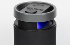 Hyundai Select H-MC1241 – это колонка с неожиданным дизайном и нетривиальным подходом к конструкции. Она выполнена в цилиндрическом корпусе, по боковой поверхности которого размещены четыре ВЧ-динамика. Такое решение позволяет колонке играть на 360 градусов, заполняя звуком пространство вокруг. Необычная форма повлияла и на способ организации подсветки – она равномерно охватывает колонку и смотрится по-настоящему эффектно.