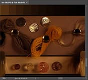 Зато искусственные фактуры беззеркалки Fujifilm обрабатывают очень искусно, выше среднего уровня APS-C. Здесь они действительно приближаются к «полному кадру». Посмотрите, как героиня теста обработала другие фрагменты нашего стенда. Они были сняты в темной и светлой сценах с выключенным и включенным «шумодавом». Всего четыре варианта.
