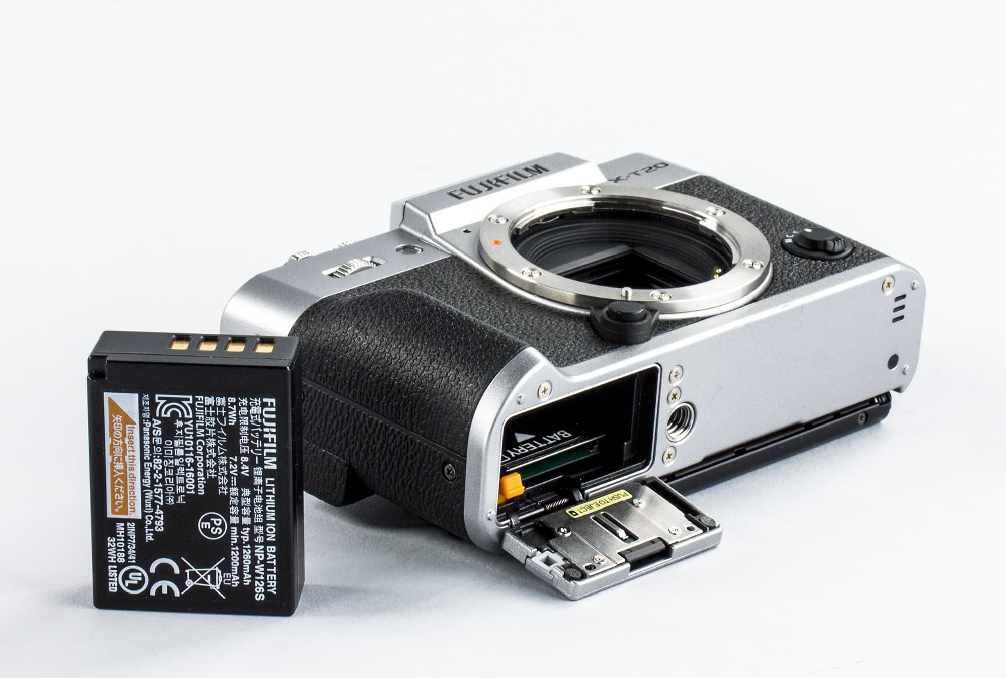 - Слот для карт памяти один, он помещается внутри батарейного отсека; карты стандарта UHS II не поддерживаются (у Fujifilm X-T2 два слота для карт памяти, отдельный отсек для них; поддерживаются карты стандарта UHS II).