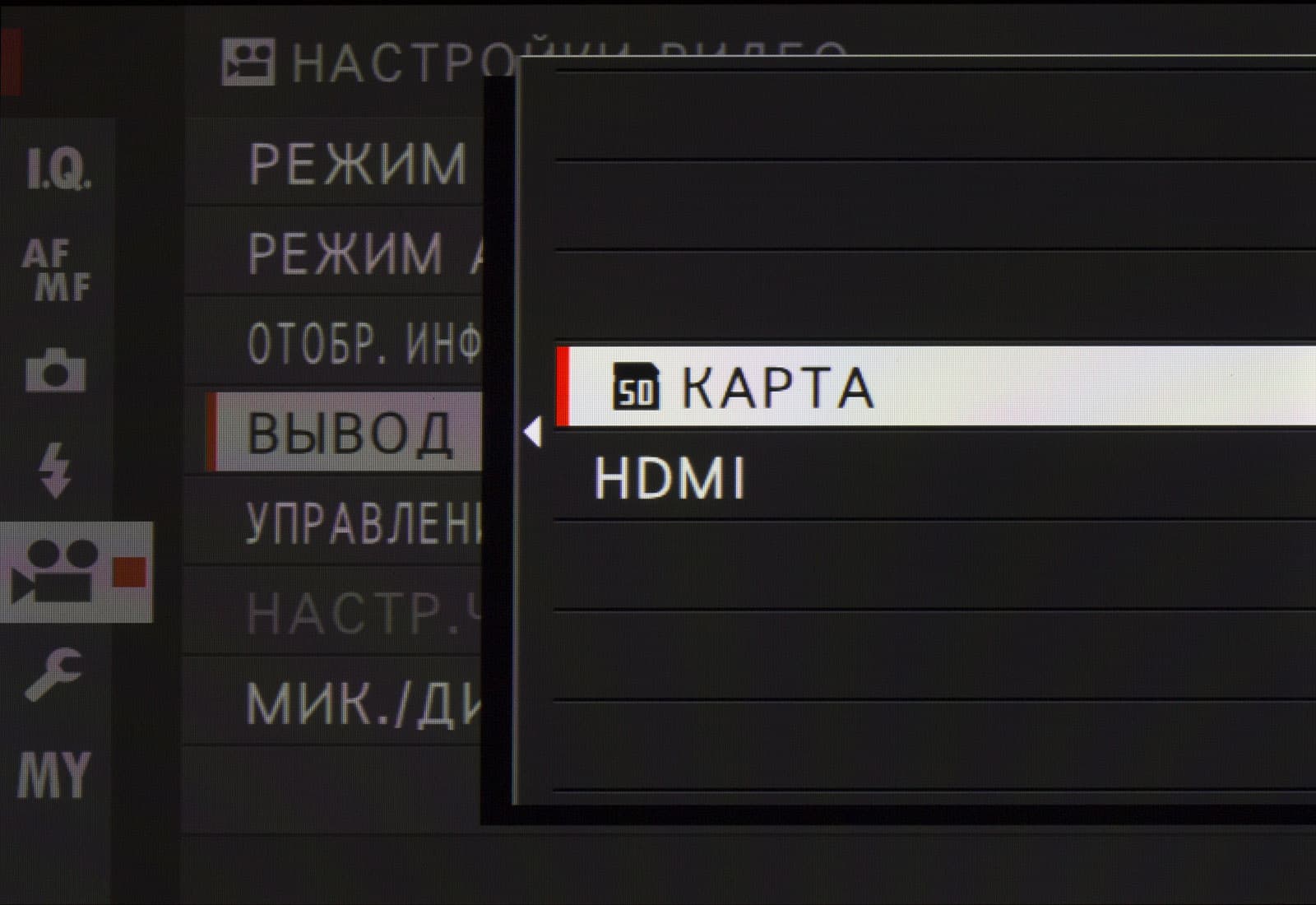 - I.Q. — Image Quality, «Качество изображения». Это настройки формата файлов, вида RAW (со сжатием или без сжатия), моделирования «пленки», эффекта зернистости, установки динамического диапазона и др.