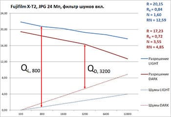 | Fujifilm X-T20 RAW, фильтр шумов выкл. темная сцена уровень шумов N=3,4 | Fujifilm X-T2 RAW, фильтр шумов выкл. темная сцена уровень шумов N=3,3 | |