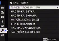 - «Настройка съемки» — здесь сосредоточены пункты настройки «привода» (в частности, брекетинга), таймера, интервальной съемки, затвора, чувствительности и др.