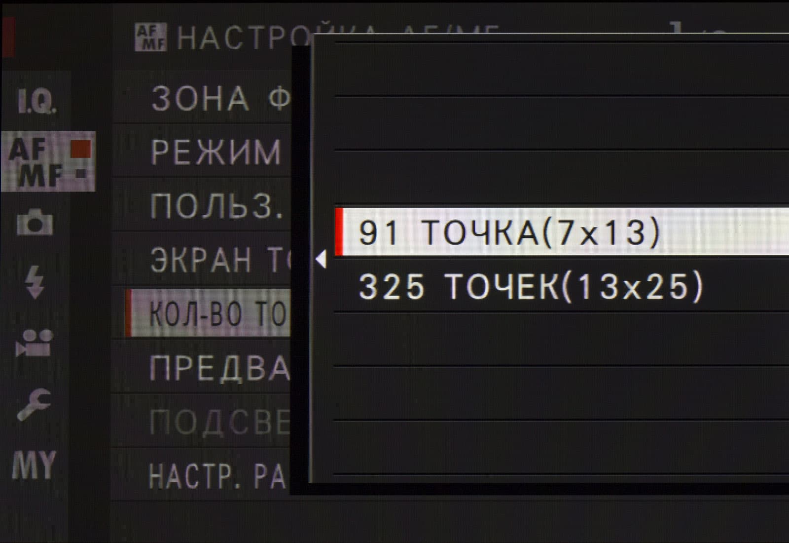- AF/MF — настройки автоматической и ручной фокусировки.