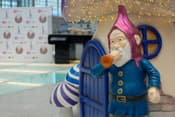 Нижняя, почти проваленная в темноту часть кадра — это идеально ровная поверхность черной каменной плиты, покрытая слоем воды, которая понемногу стекает с приподнятых краев. Интересная фантазия дизайнеров и строителей, а для нашего испытания — хорошая мишень. Прямоугольные формы на этой почти черной поверхности — это отражение плиток, расположенных на потолке. Уже сам факт того, что их рисунок хорошо различим, подтверждает способность матрицы камеры воспроизводить детали в густых тенях.