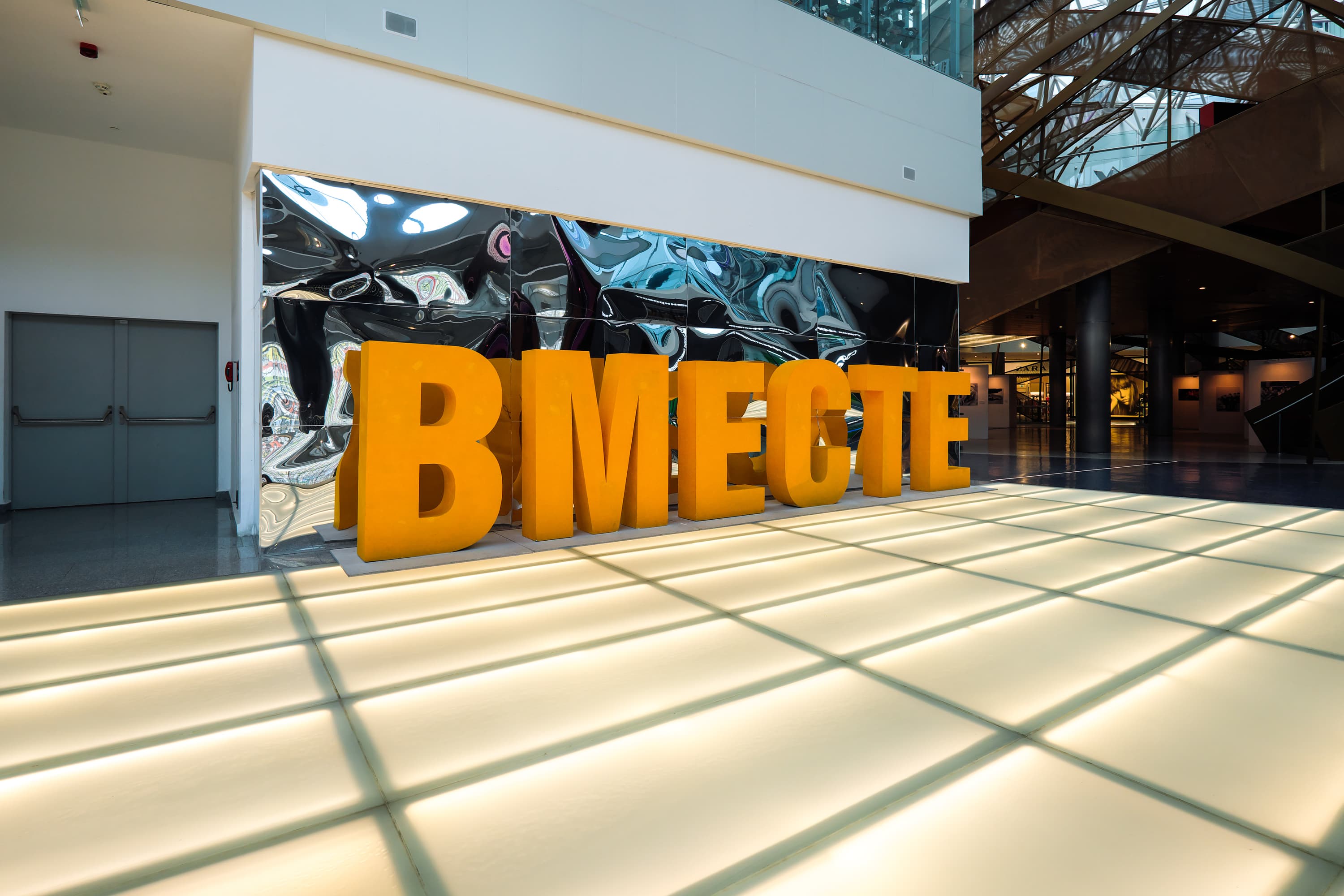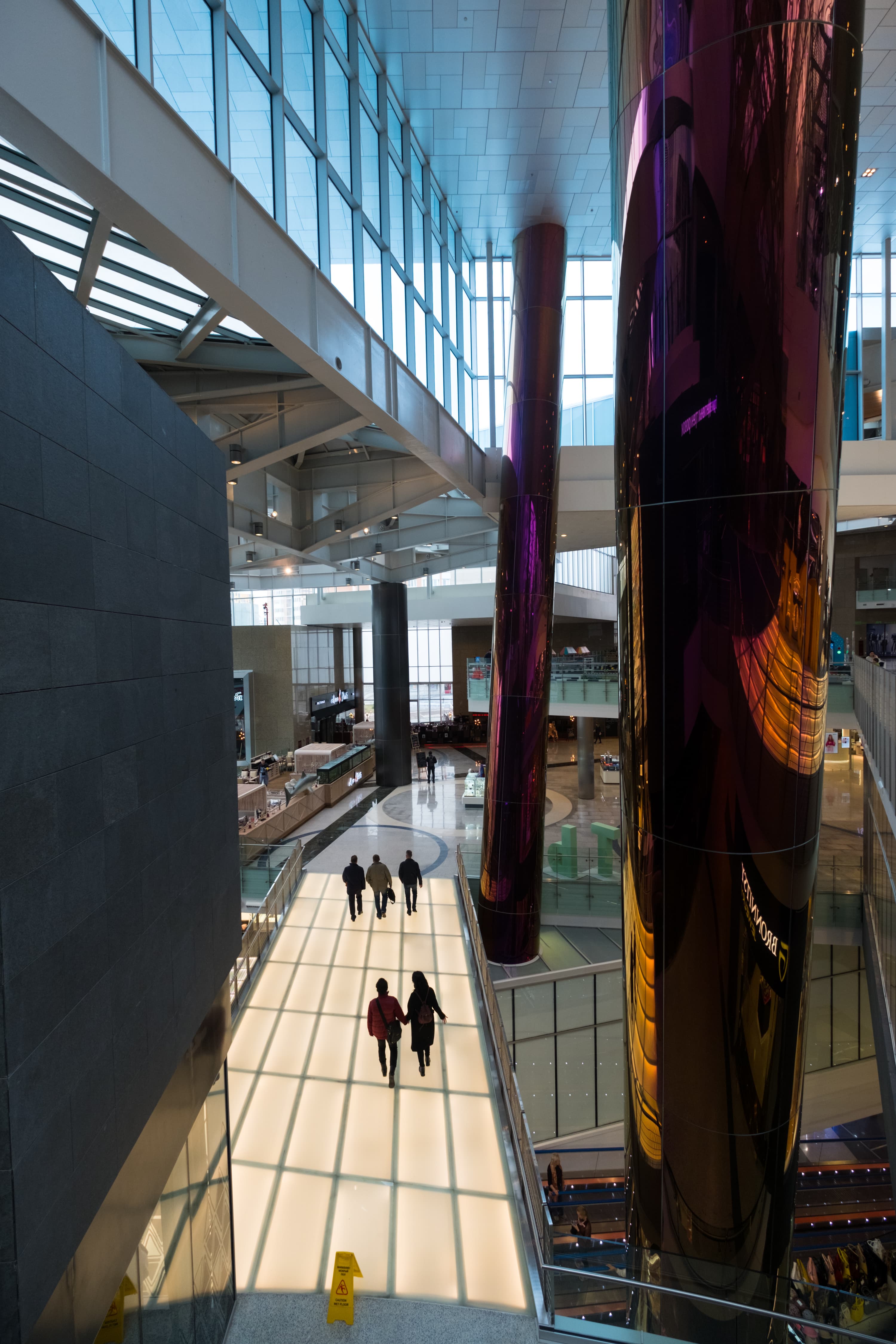Сверху сквозь стеклянный колпак падает дневной свет, а снизу пространство освещено лампами накаливания. Однако кунштюк с раздельной установкой баланса белого для двух зон в одном кадре — это уже слишком. Доверившись камере и оптике, мы не прогадали: общее впечатление от снимка вполне хорошее.