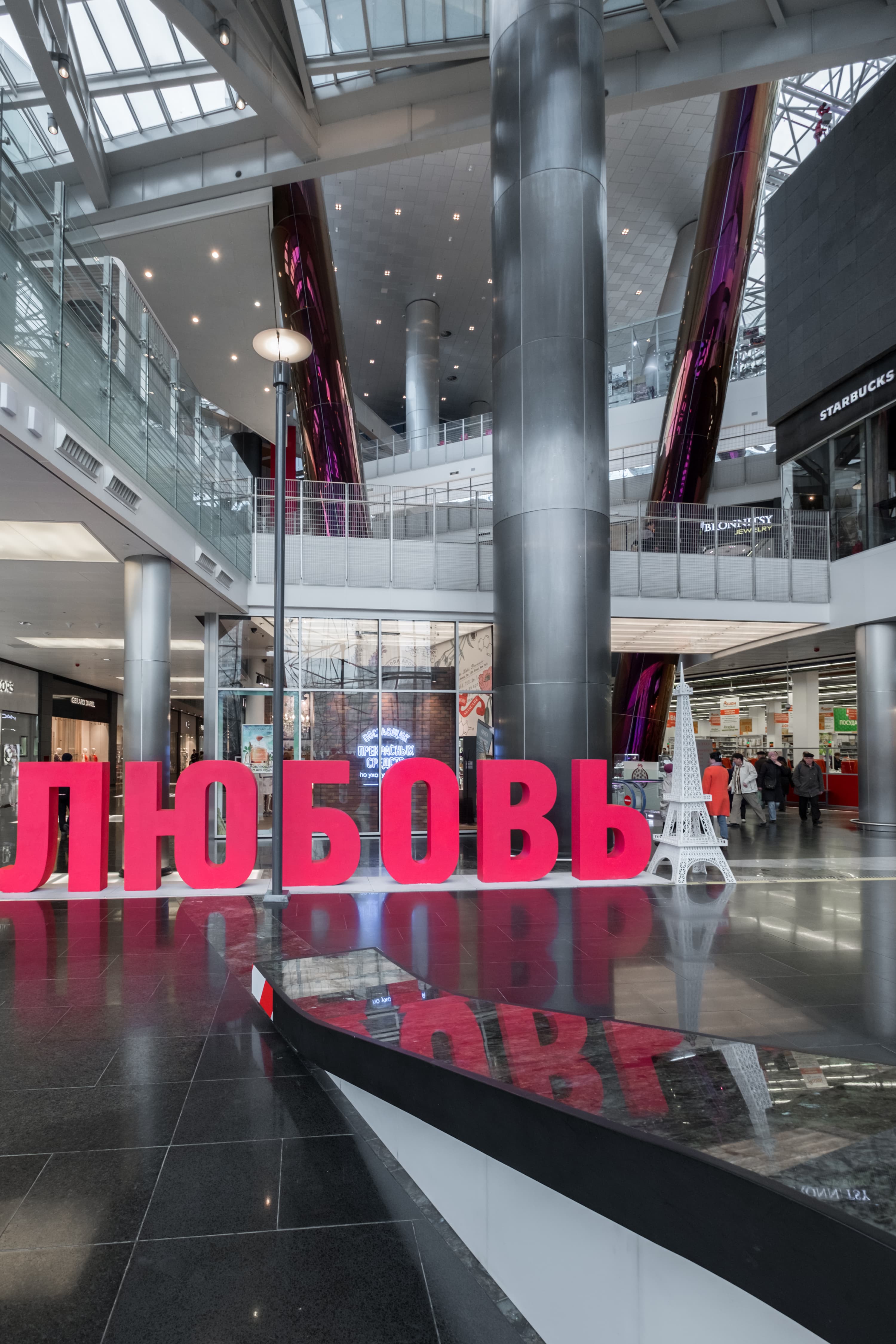 При съемке интерьеров торгового центра на полностью открытой диафрагме видим достаточно широкий диапазон полутоновых переходов от весьма густых теней до умеренно интенсивных светов. В наиболее ярких участках светов детали, конечно, утрачиваются, но это все-таки особенности сенсора камеры, а не объектива.