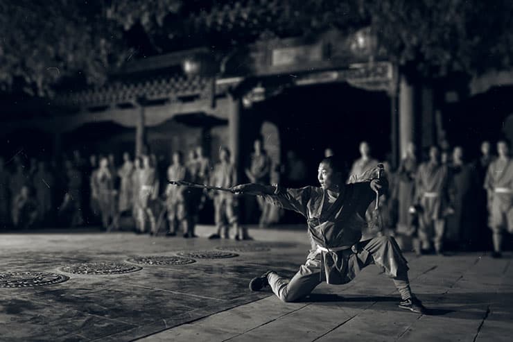 Но, конечно, в первую очередь меня интересовало у-шу. Я очень хотел попасть на тренировки — их обычные, рядовые тренировки. Бывают и ночные, и утренние, и все они — закрытые. Я очень хотел это сфотографировать, потому что таких фотографий в мире очень мало: немногим удается туда попасть и поснимать.