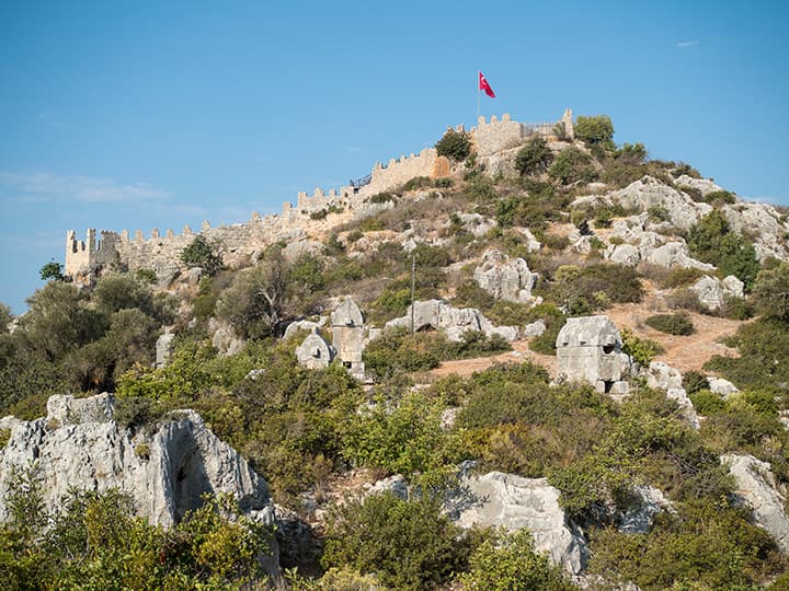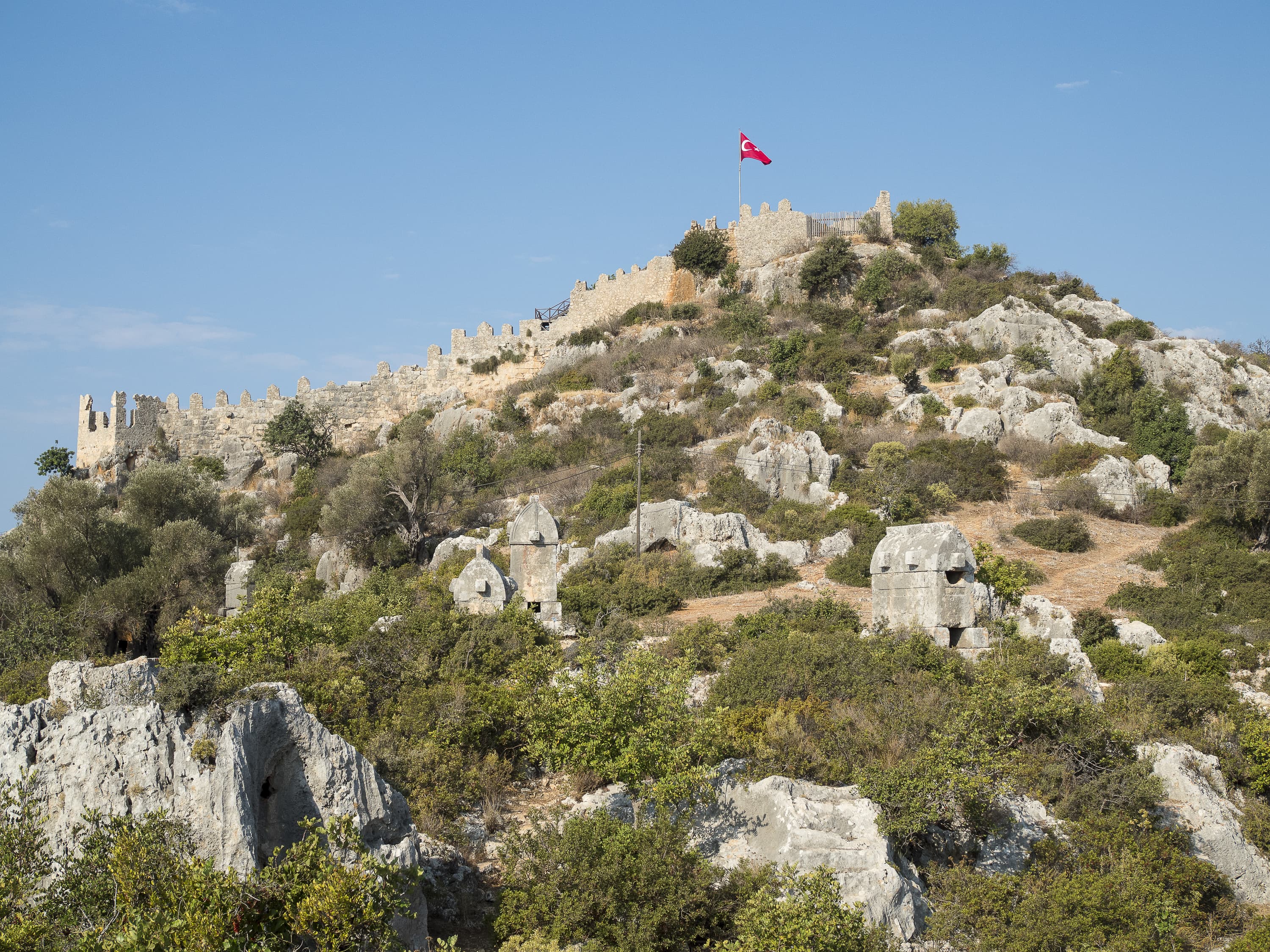 Ниже я поместил серию снимков одной сцены при разных значениях диафрагмы. Это крепость древней Симены в нынешнем турецком селении Калекёй. На обращенном к нам склоне горы стоят каменные ликийские саркофаги, которым около двух тысяч лет (все разграблены еще в древности).