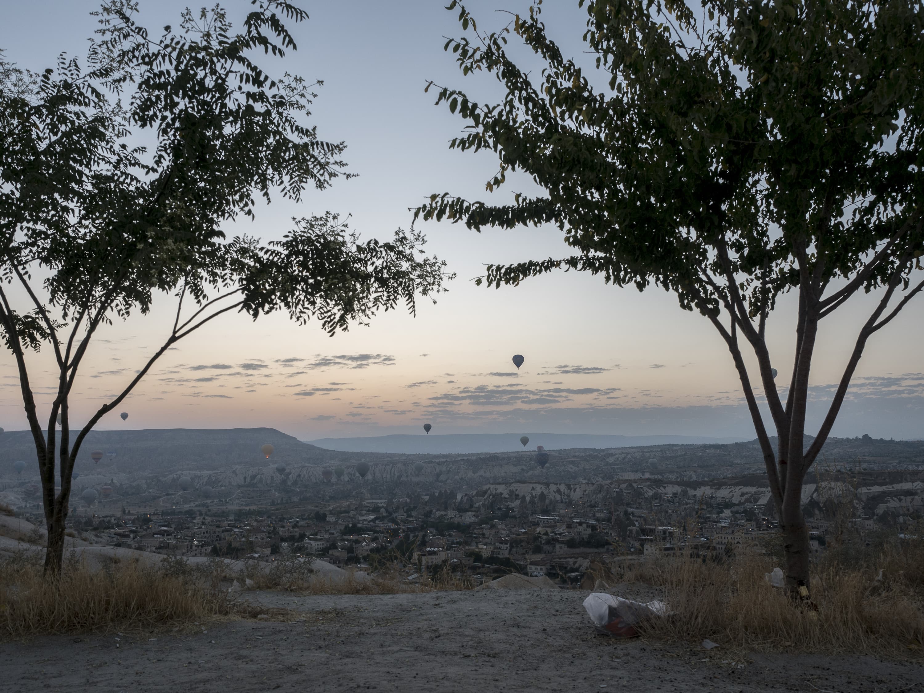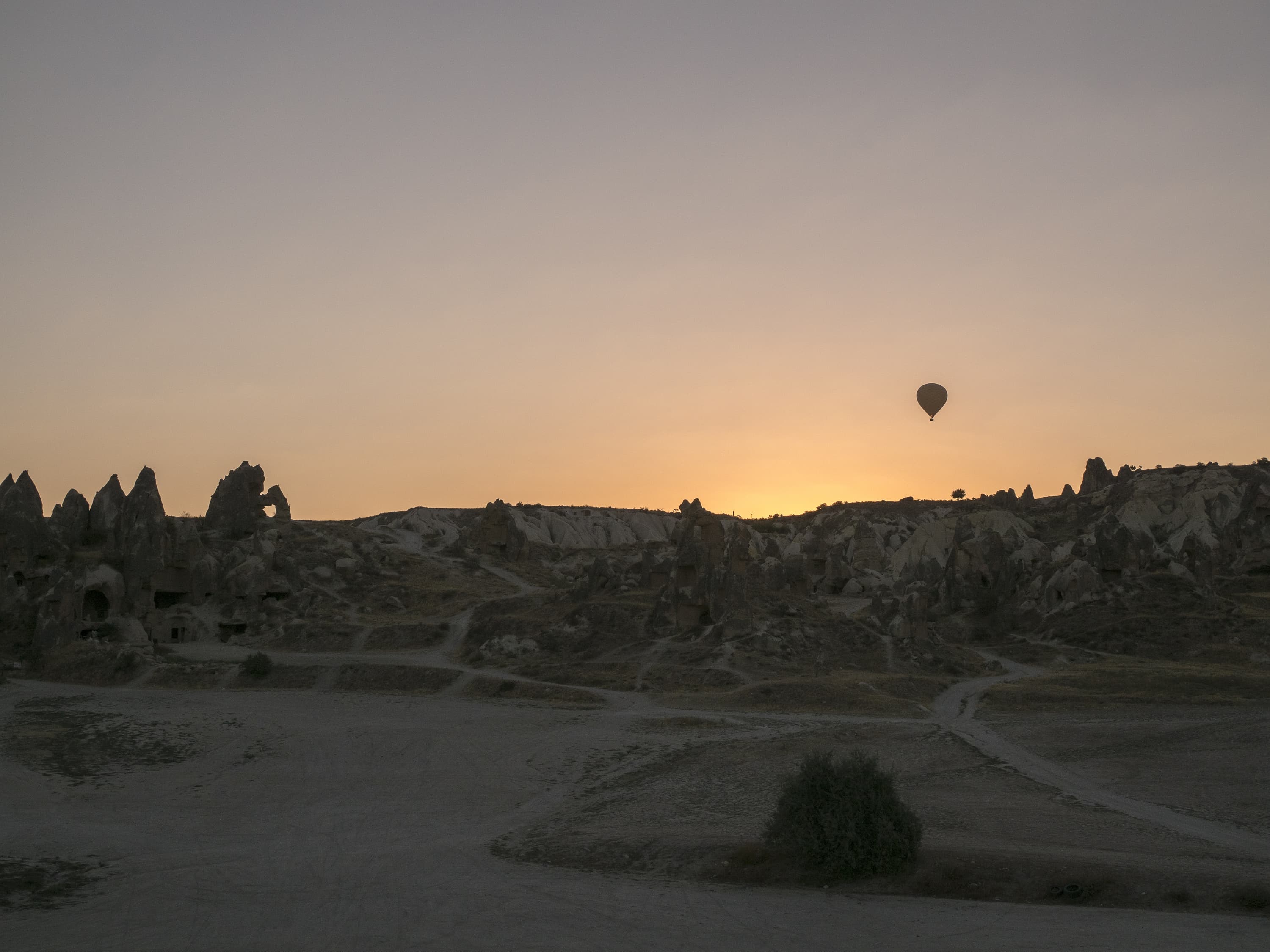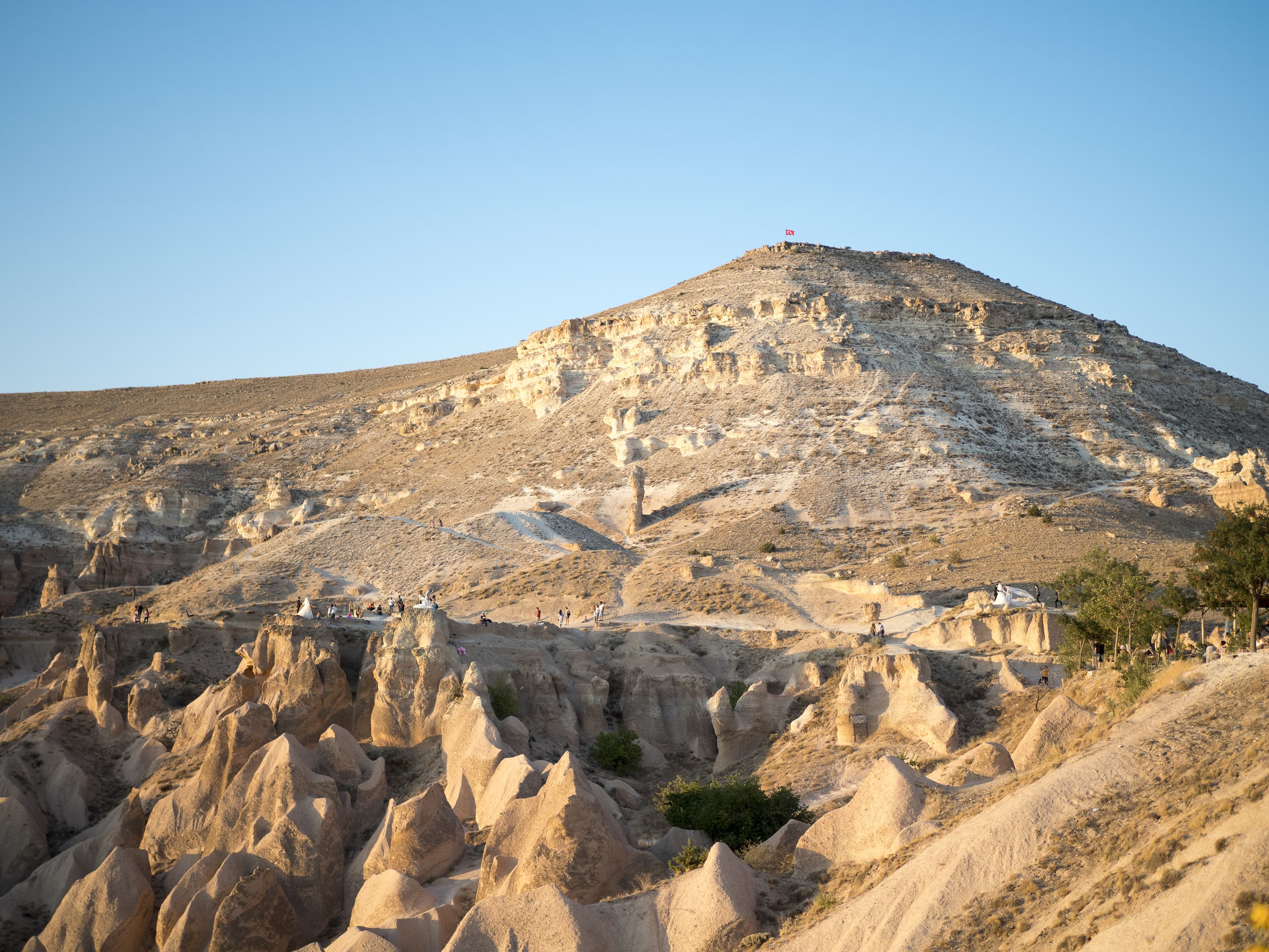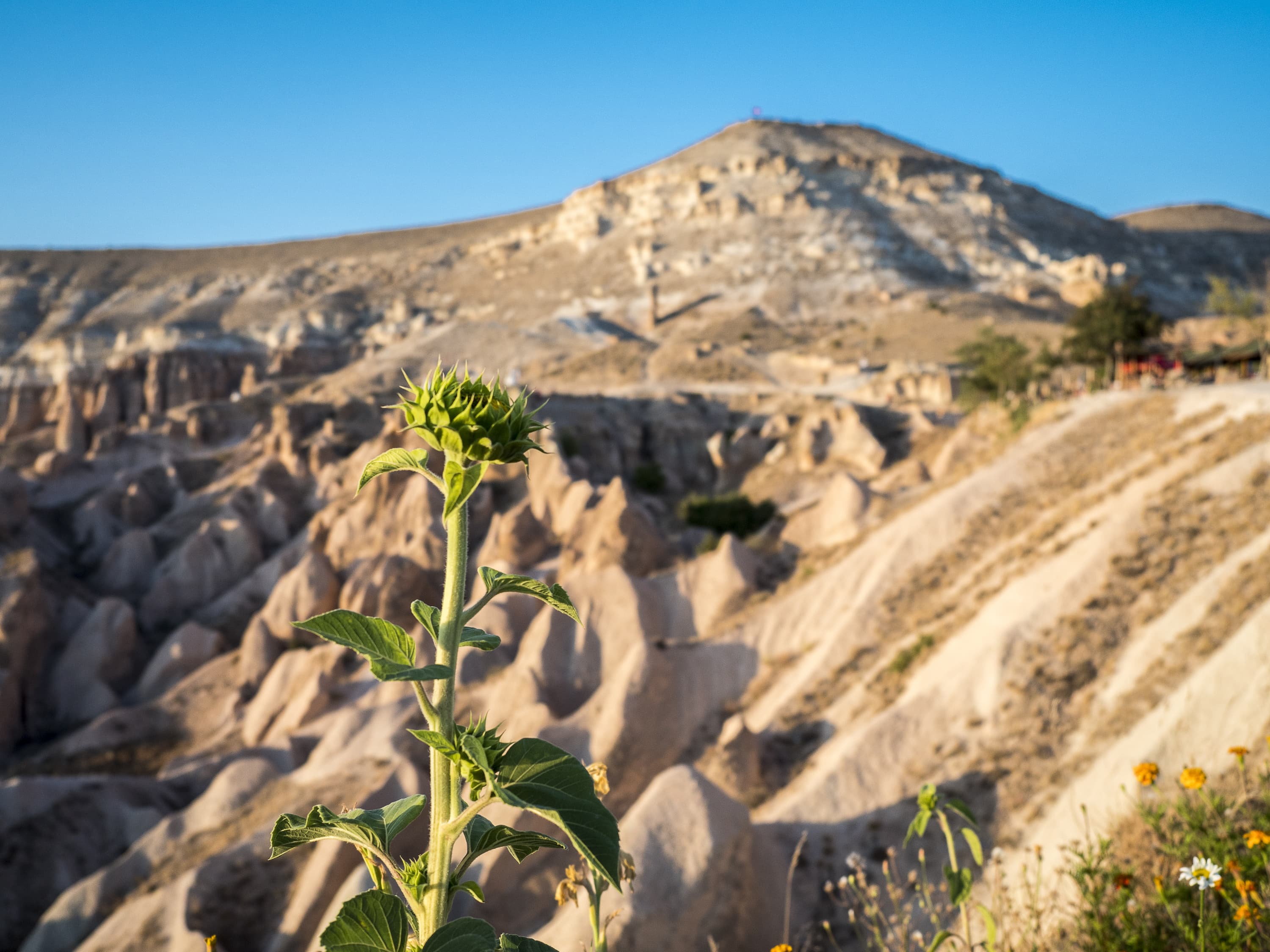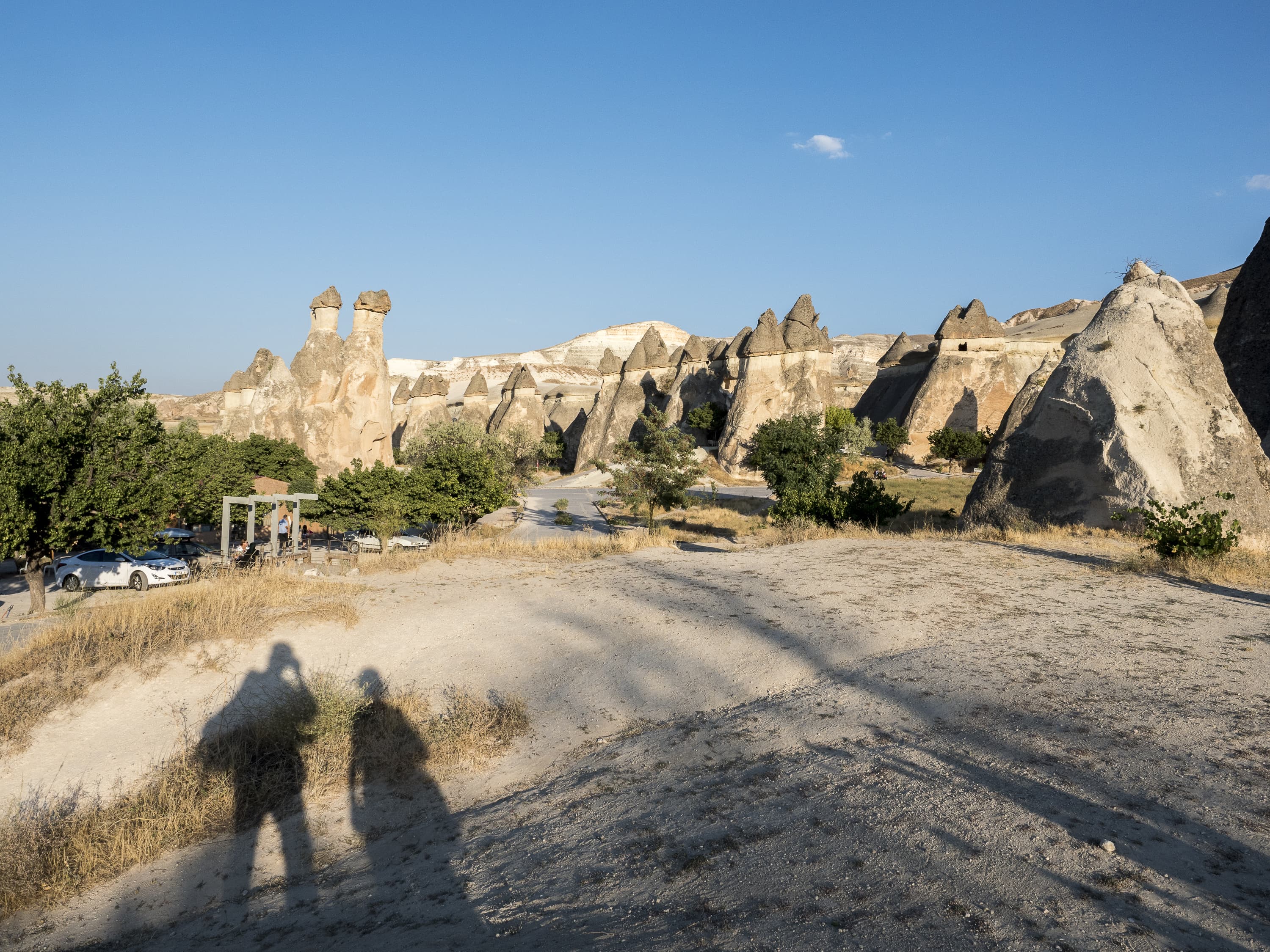 В окрестностях Гёреме есть место, облюбованное туристами для созерцания закатов — это горное плато Актепе над Красной и Розовой долинами, которые расходятся отсюда в направлениях на Чавушин и Аванос. Место известное, и шустрые местные власти обложили доступ к этой площадке данью в размере три турецкие лиры с человека. Здесь мы попрощаемся с прошедшим днем.