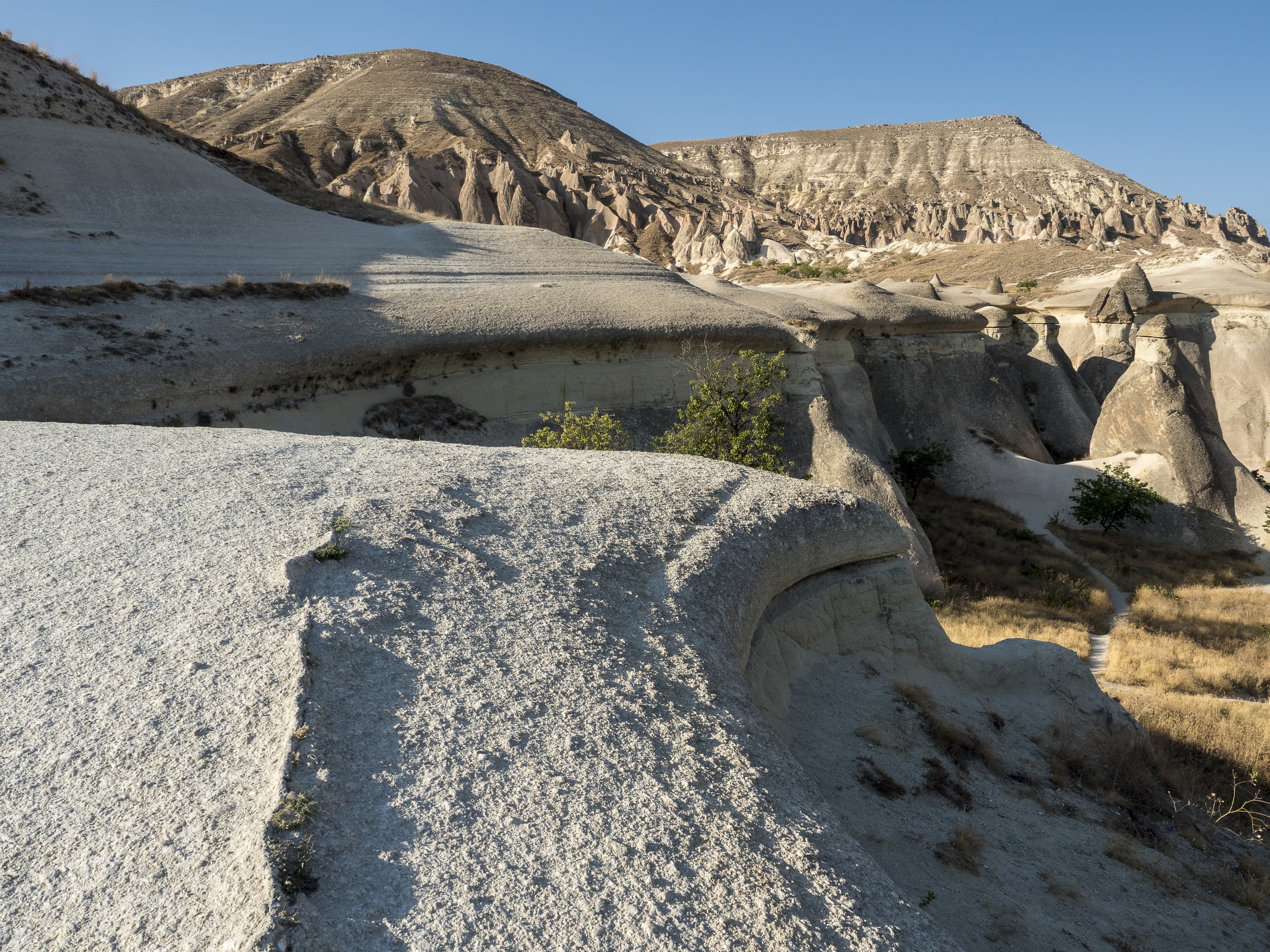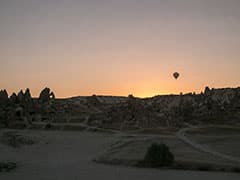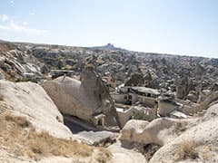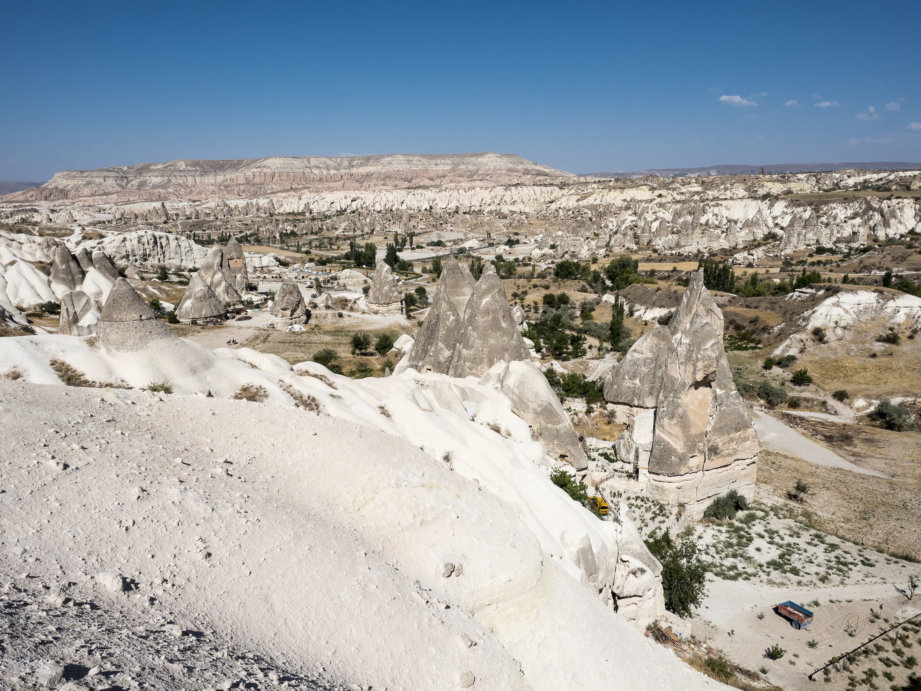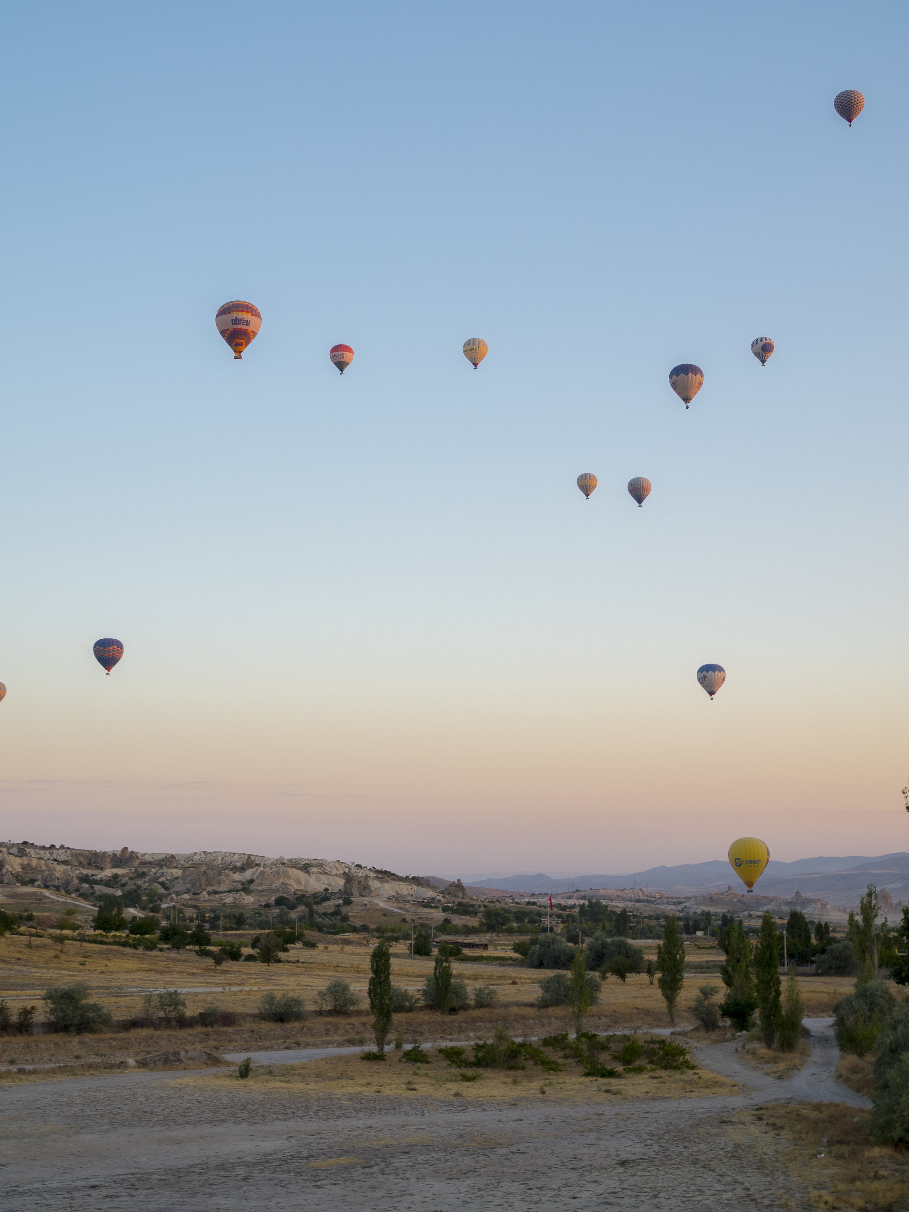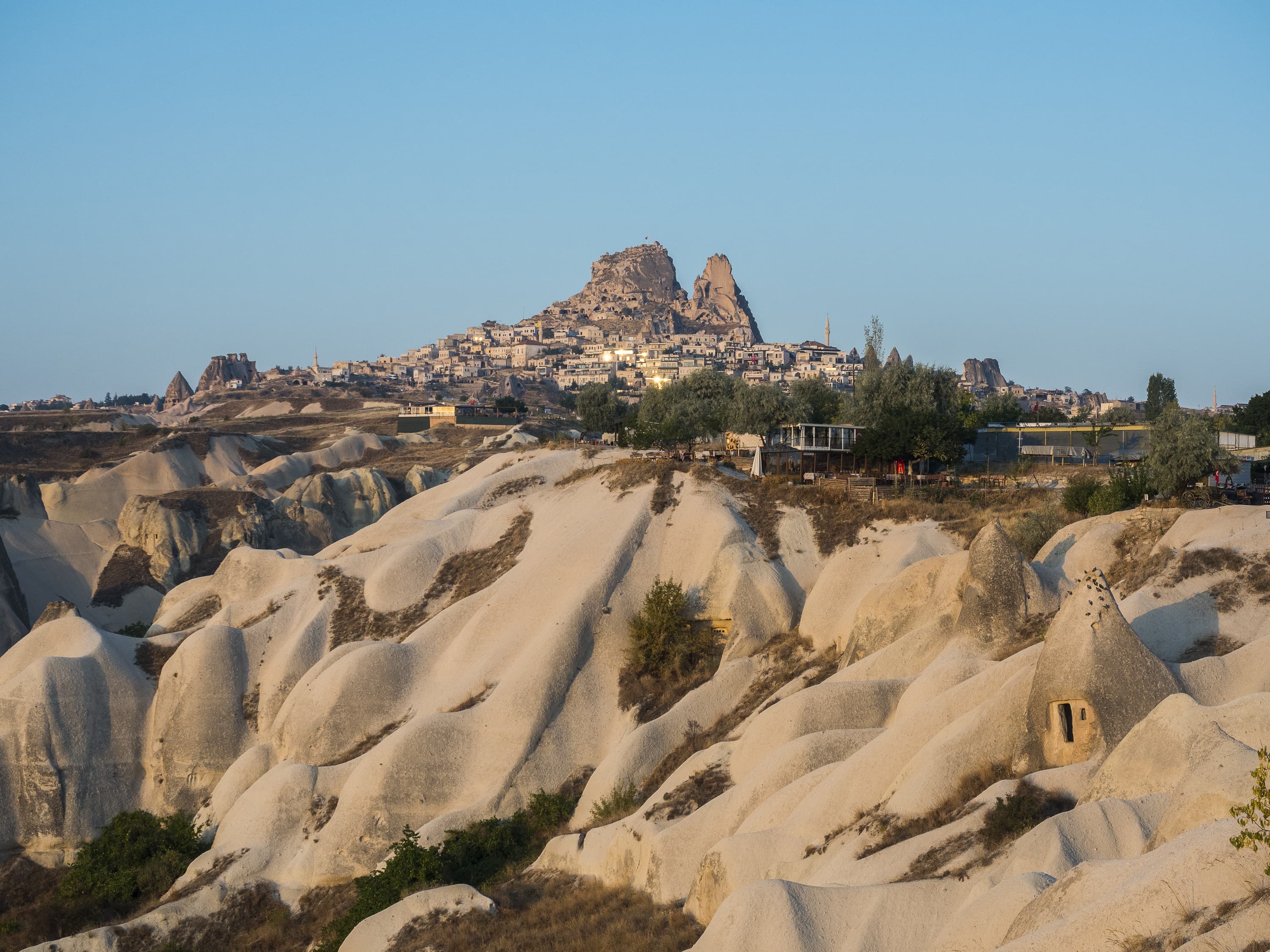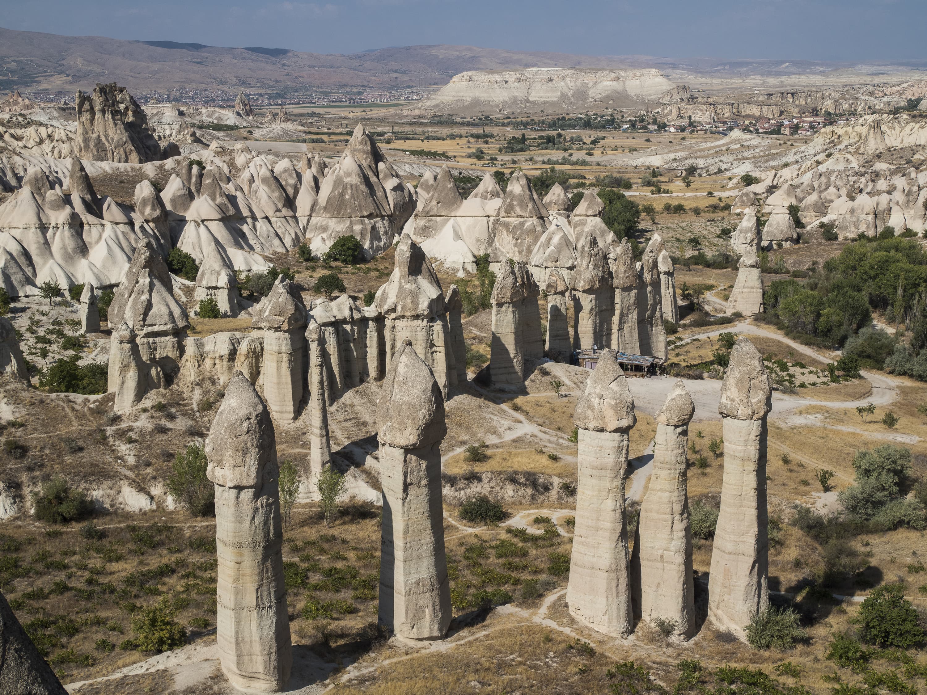В окрестностях Гёреме есть место, облюбованное туристами для созерцания закатов — это горное плато Актепе над Красной и Розовой долинами, которые расходятся отсюда в направлениях на Чавушин и Аванос. Место известное, и шустрые местные власти обложили доступ к этой площадке данью в размере три турецкие лиры с человека. Здесь мы попрощаемся с прошедшим днем.