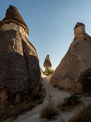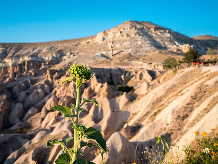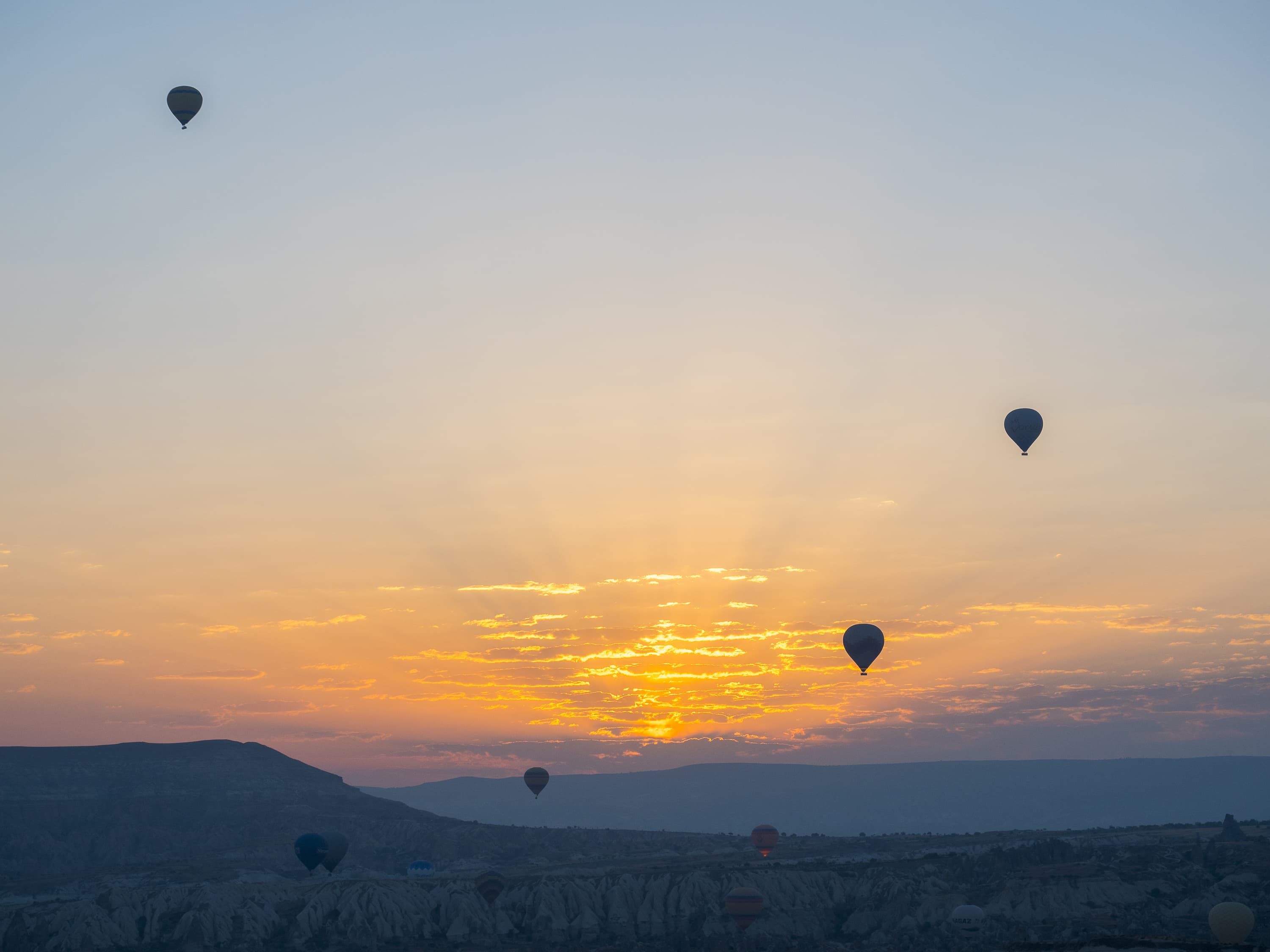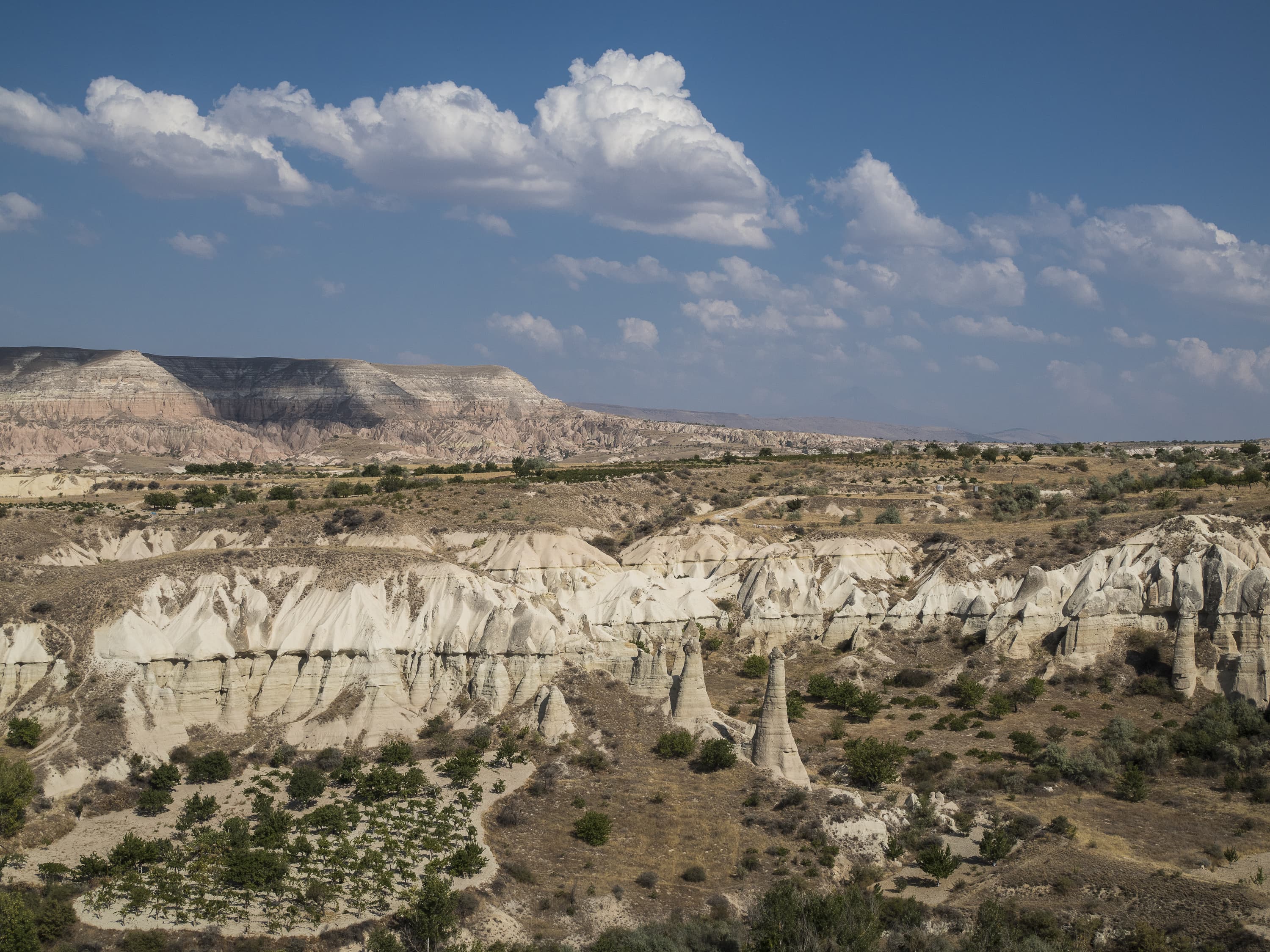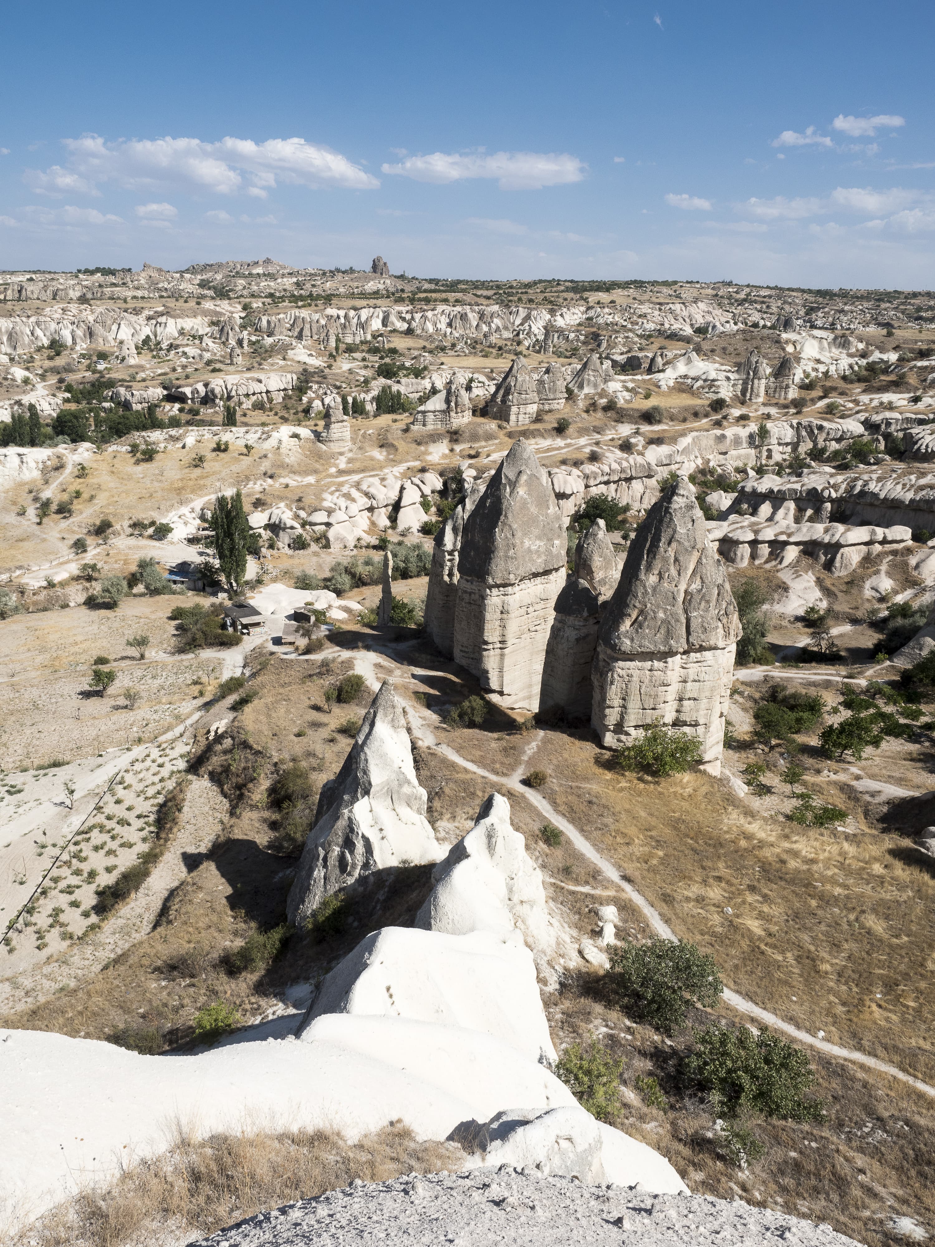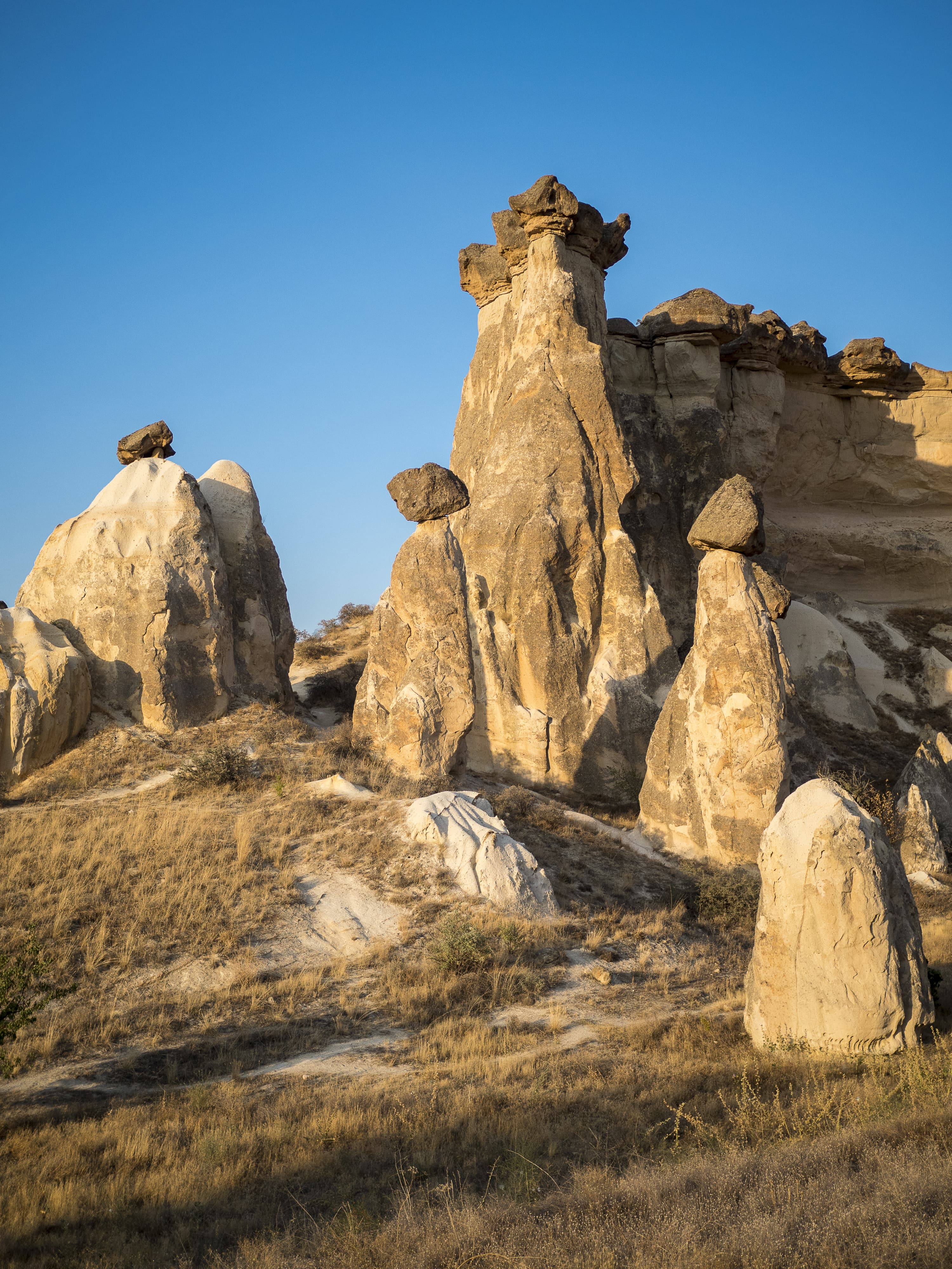 В окрестностях Гёреме есть место, облюбованное туристами для созерцания закатов — это горное плато Актепе над Красной и Розовой долинами, которые расходятся отсюда в направлениях на Чавушин и Аванос. Место известное, и шустрые местные власти обложили доступ к этой площадке данью в размере три турецкие лиры с человека. Здесь мы попрощаемся с прошедшим днем.