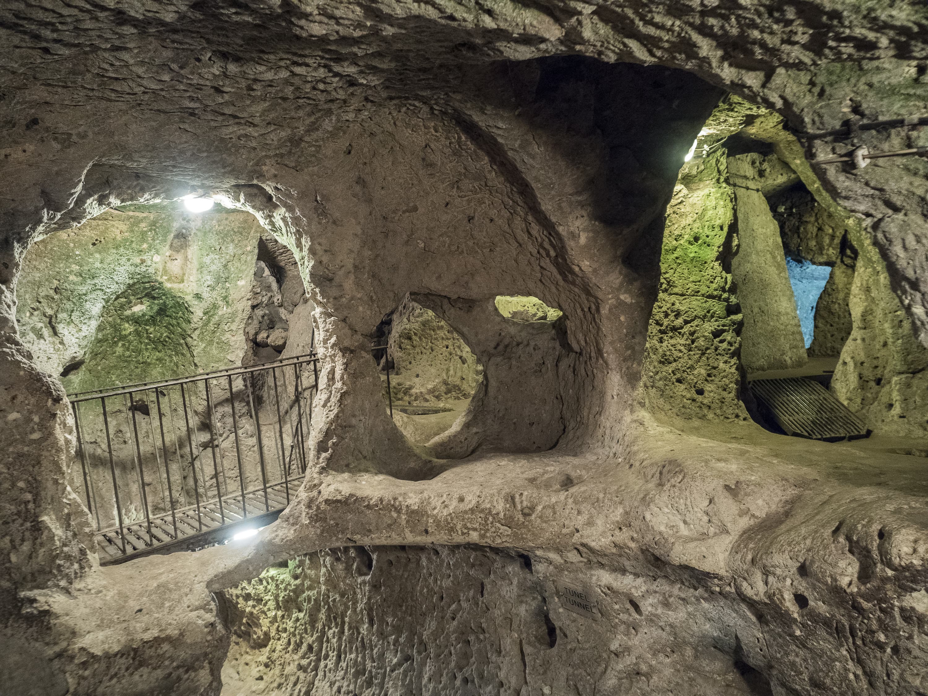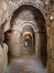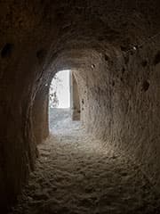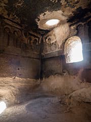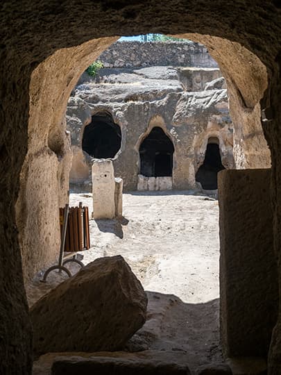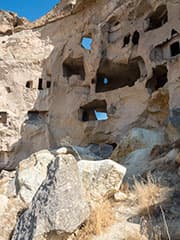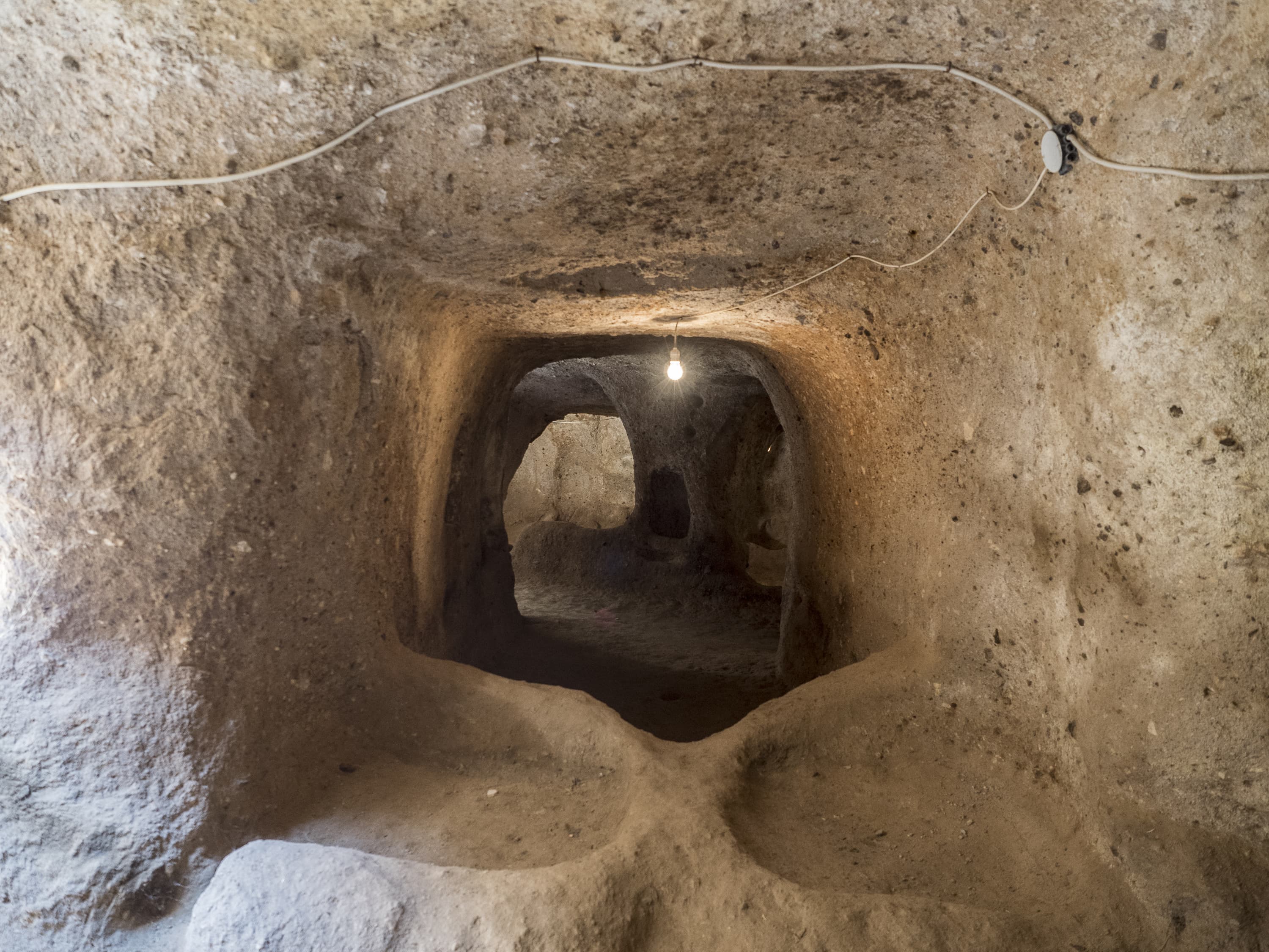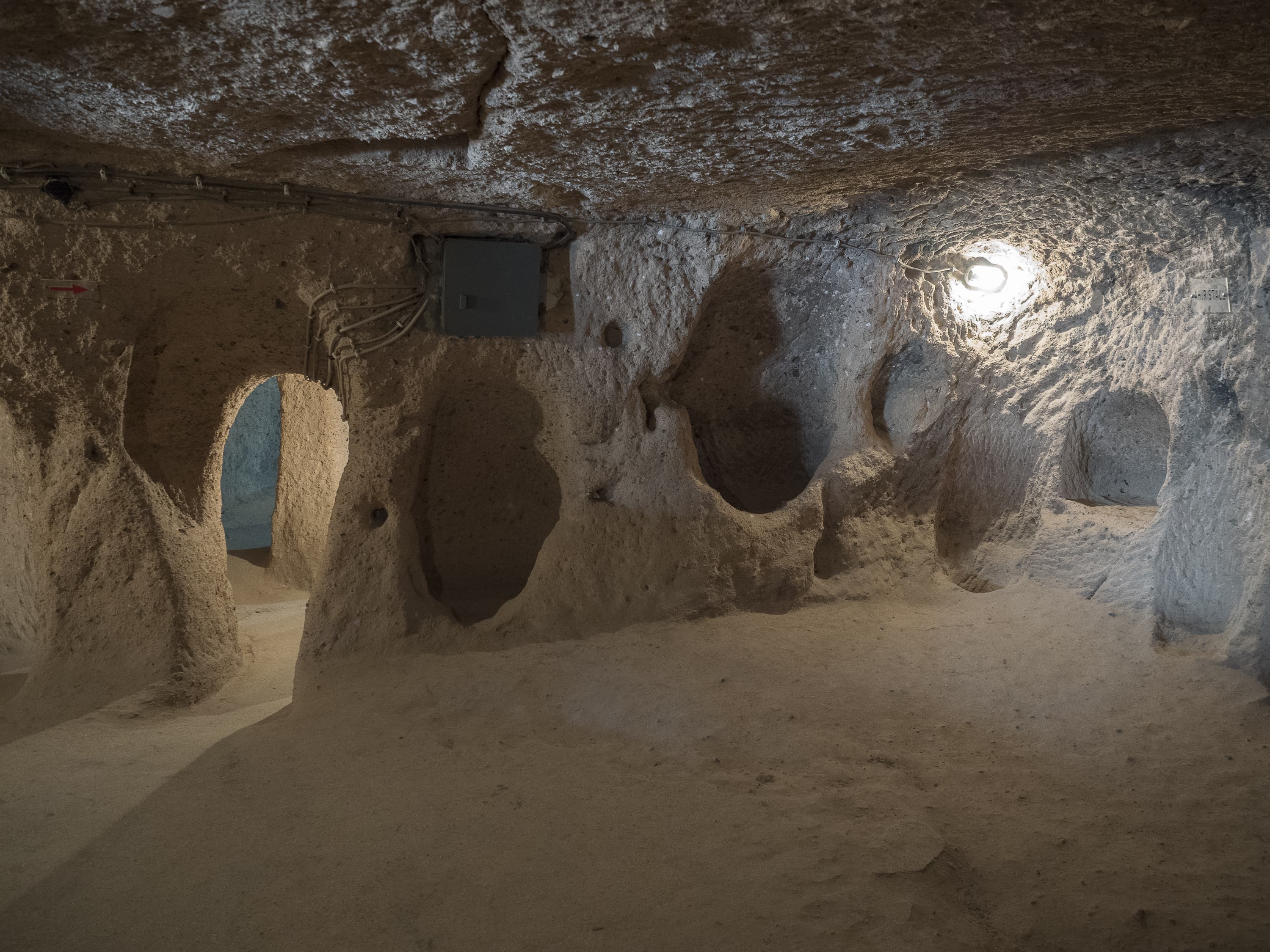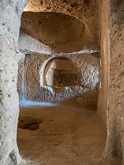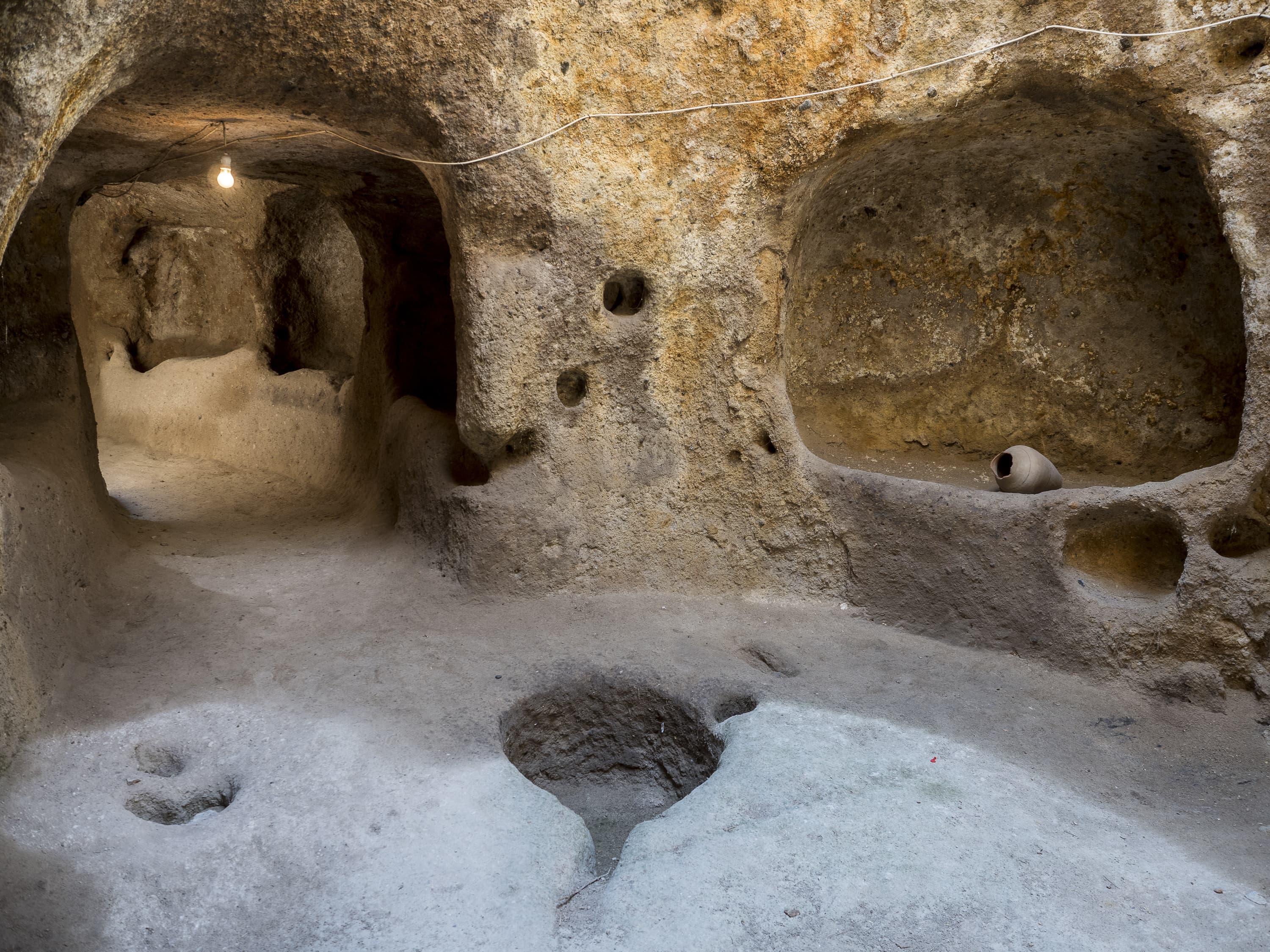 Это самый неглубокий город из подземных городов Каппадокии. Строго говоря, многие его помещения имеют собственный выход на поверхность, поэтому проще рассматривать его как совокупность пещер.
