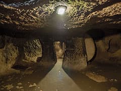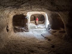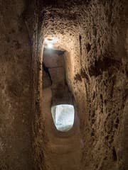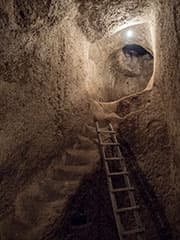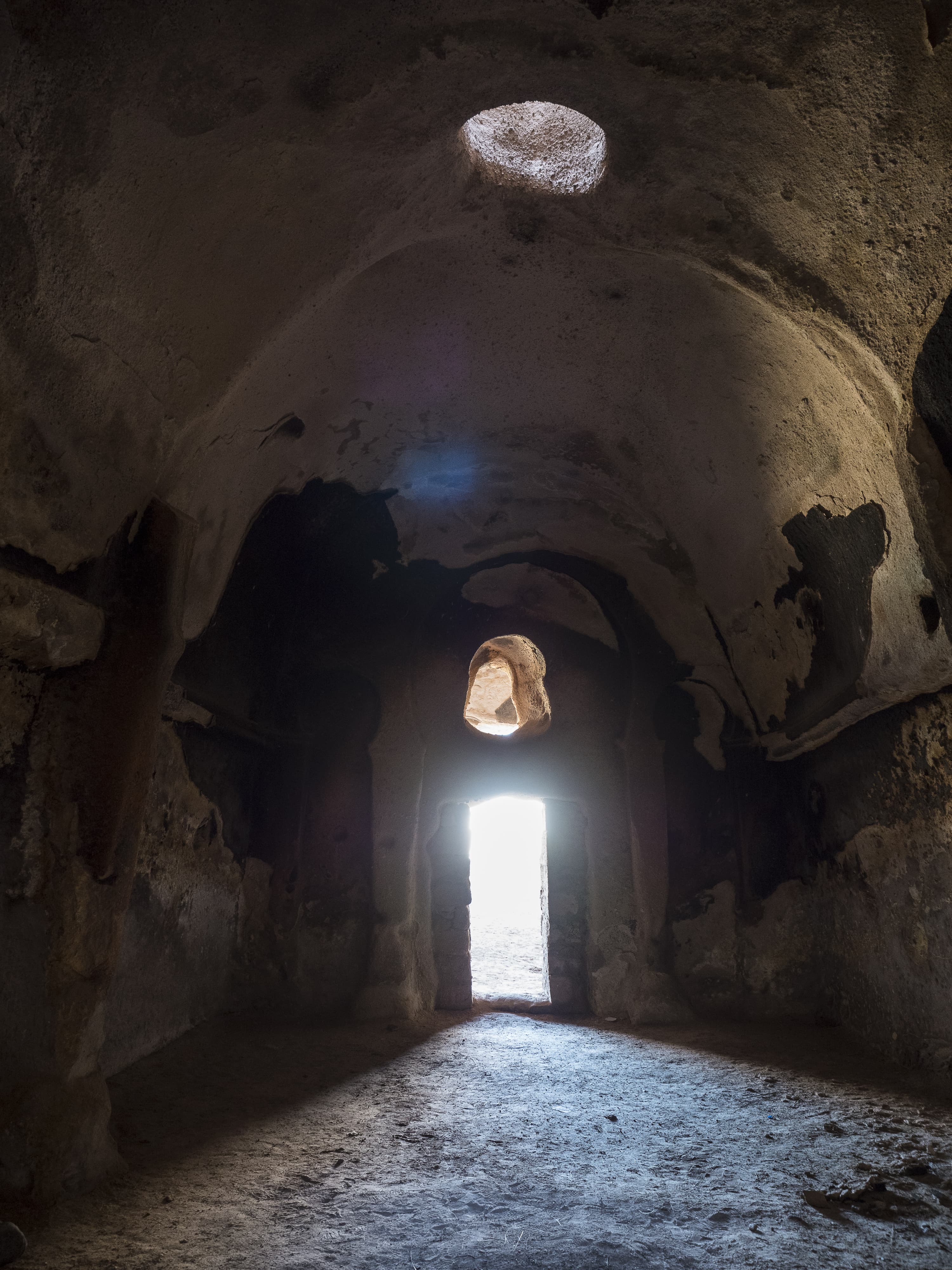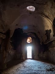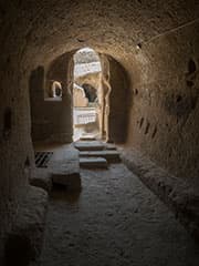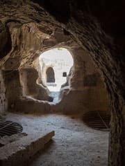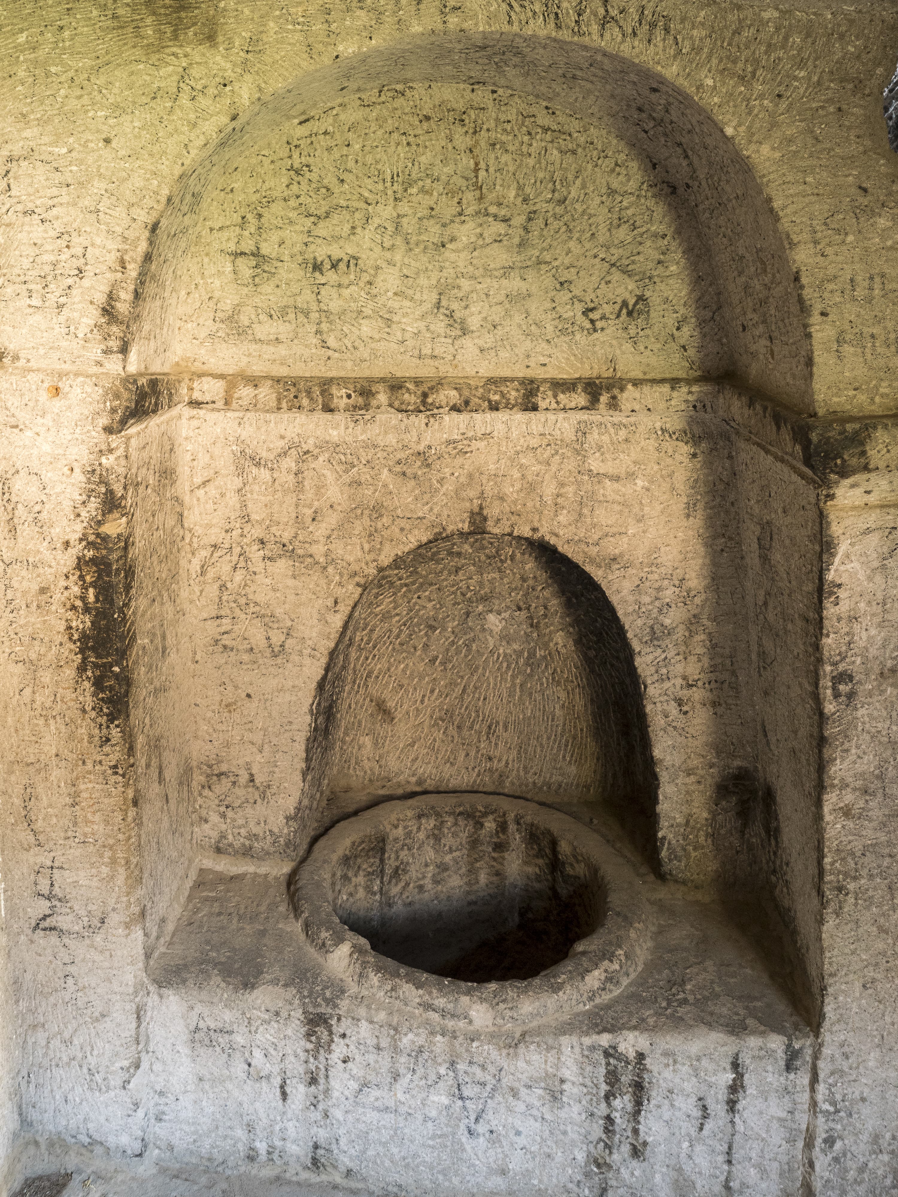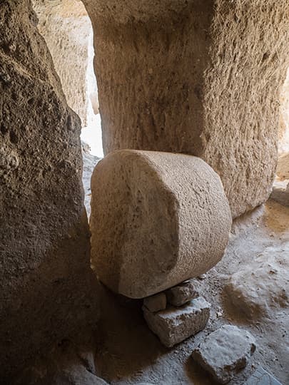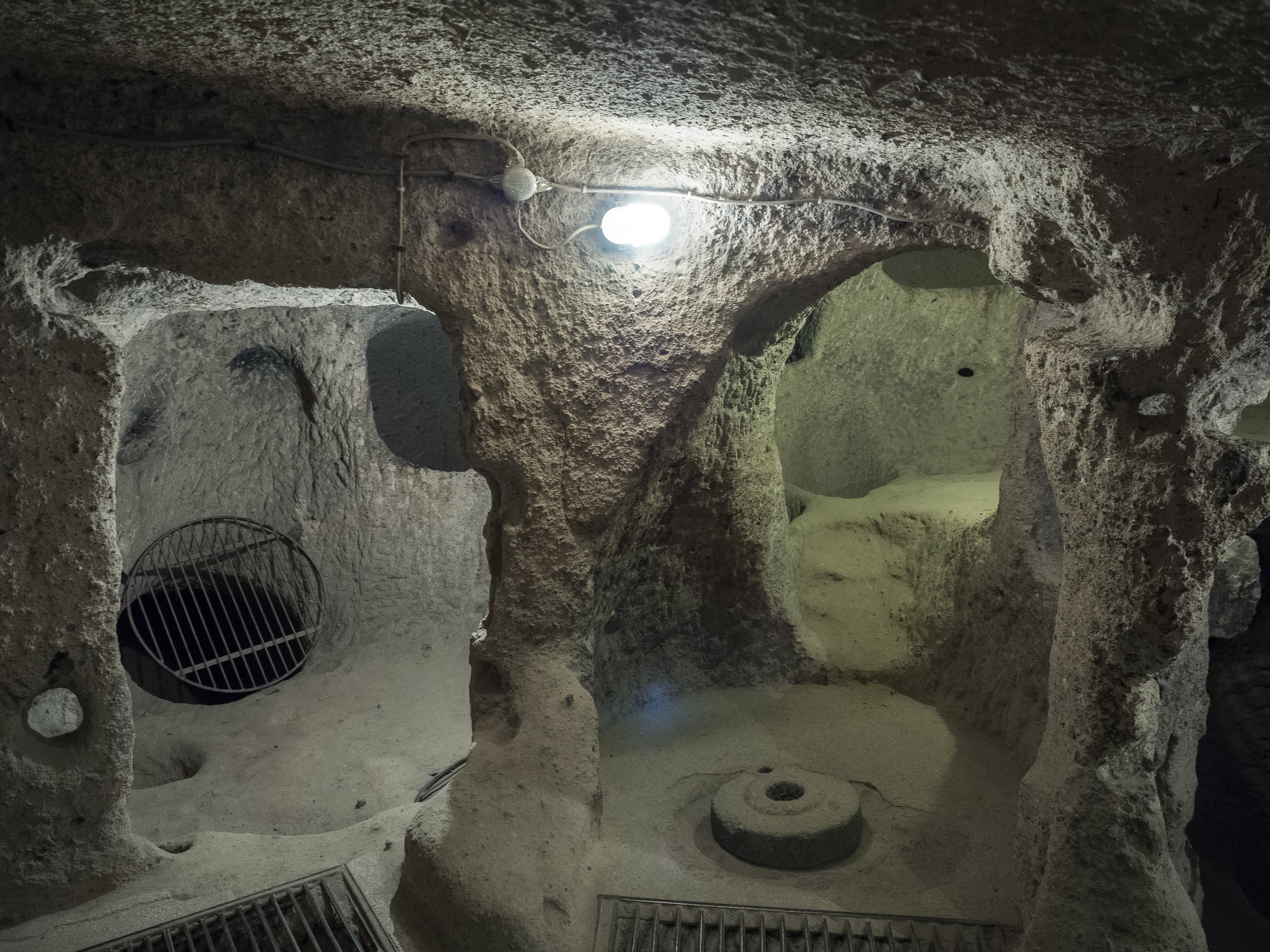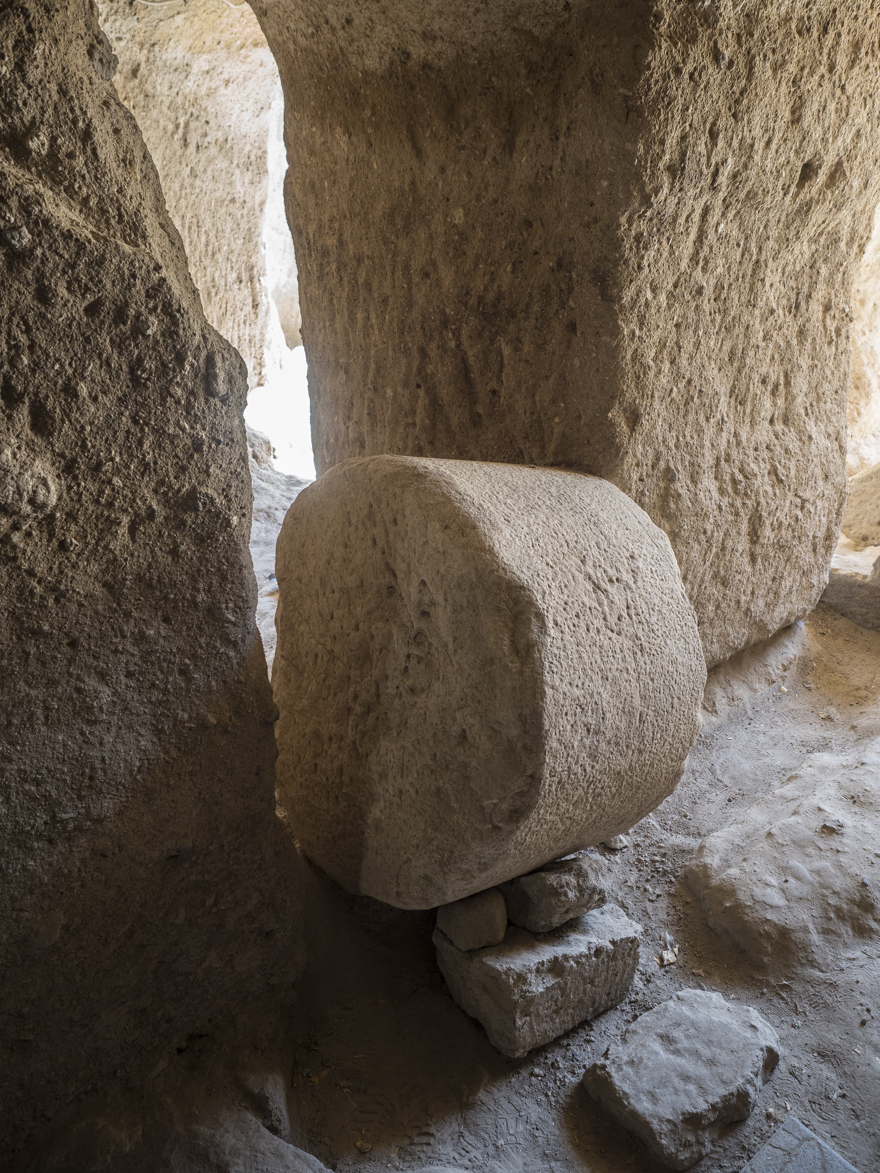Каменные диски, как тот, что мы видим на снимке, использовались во всех подземных городах Каппадокии в качестве дверей. Их закатывали в специальные ниши, перекрывая входы. Снаружи открыть такую «дверь» просто невозможно.