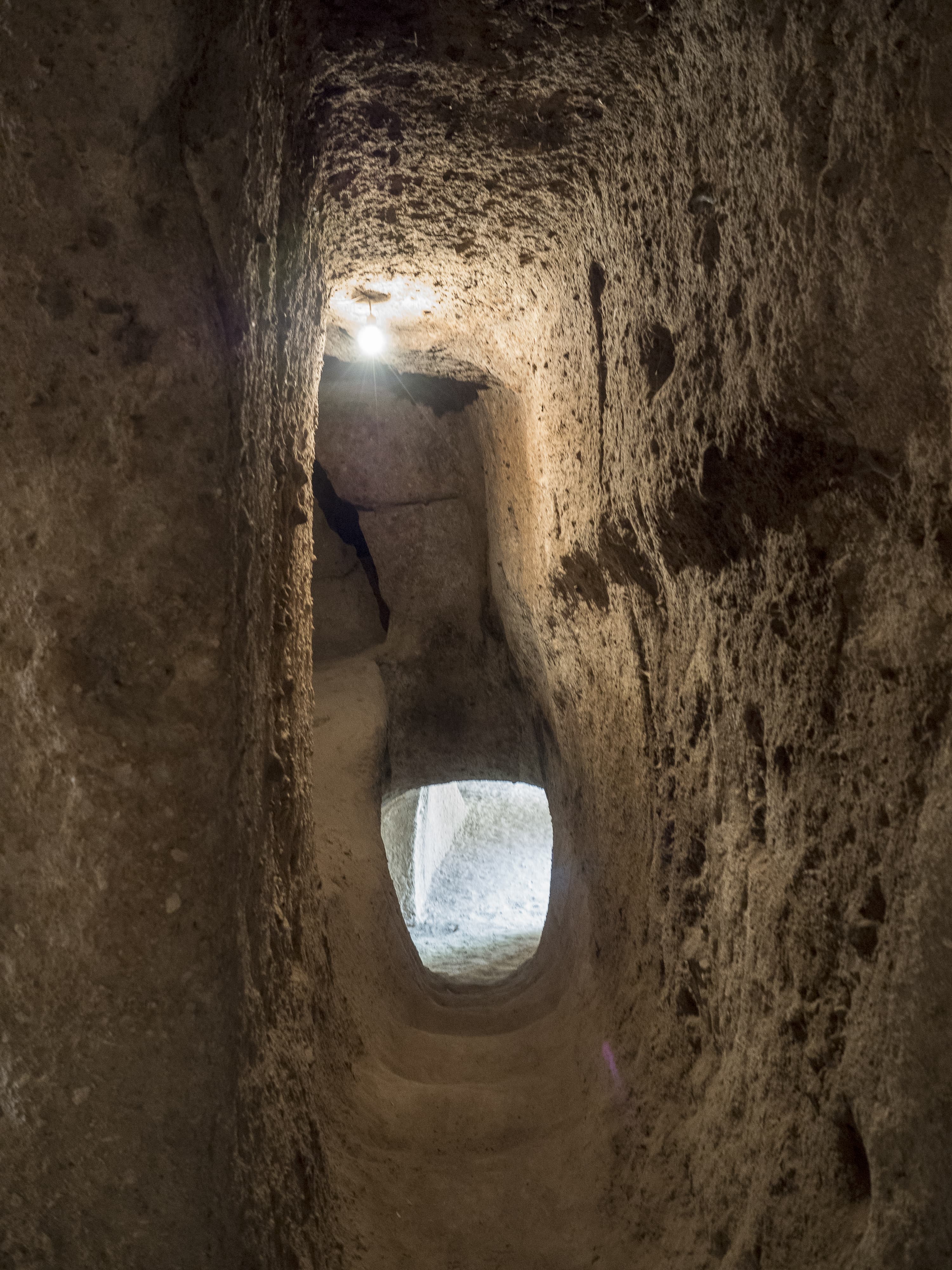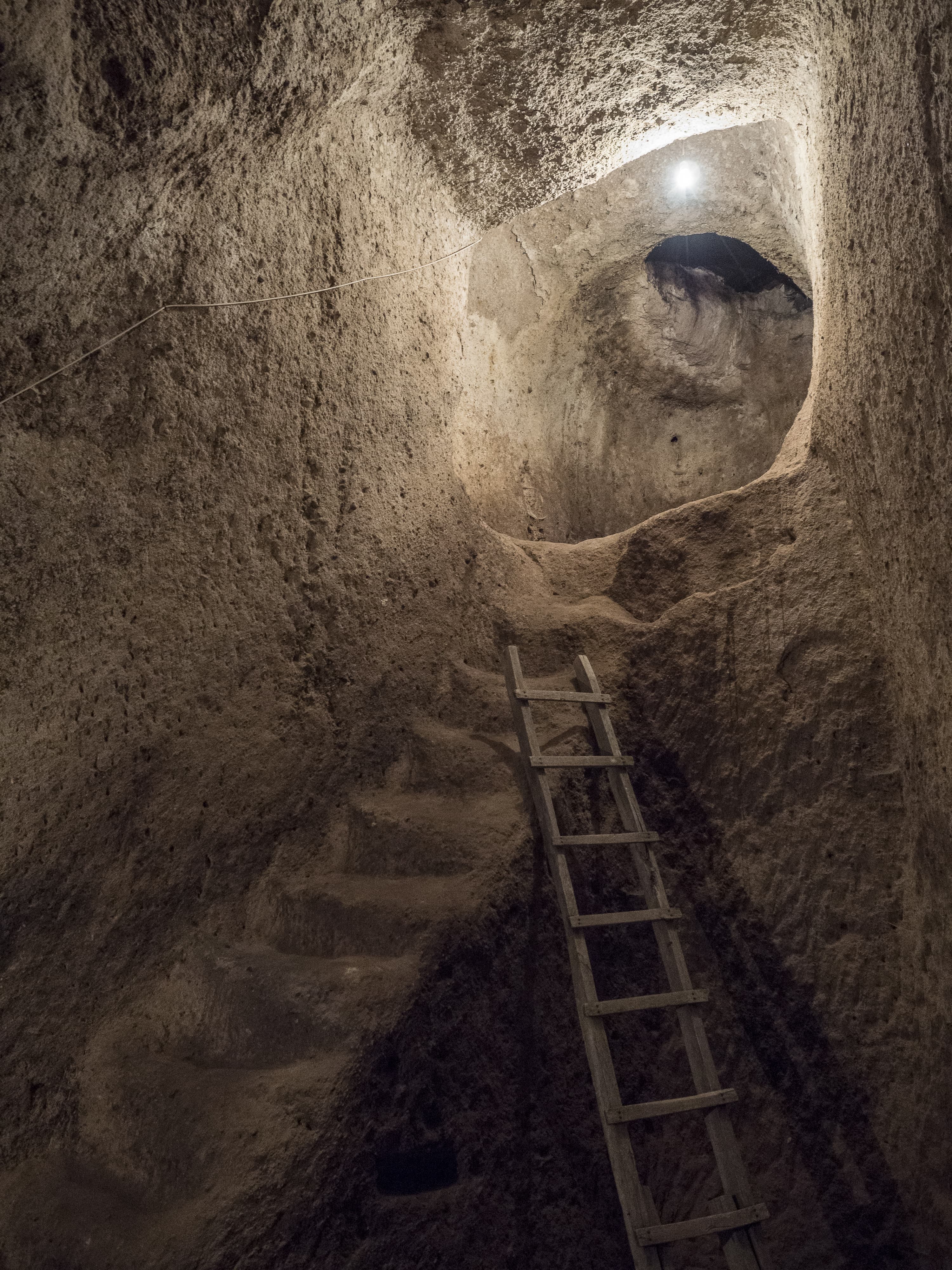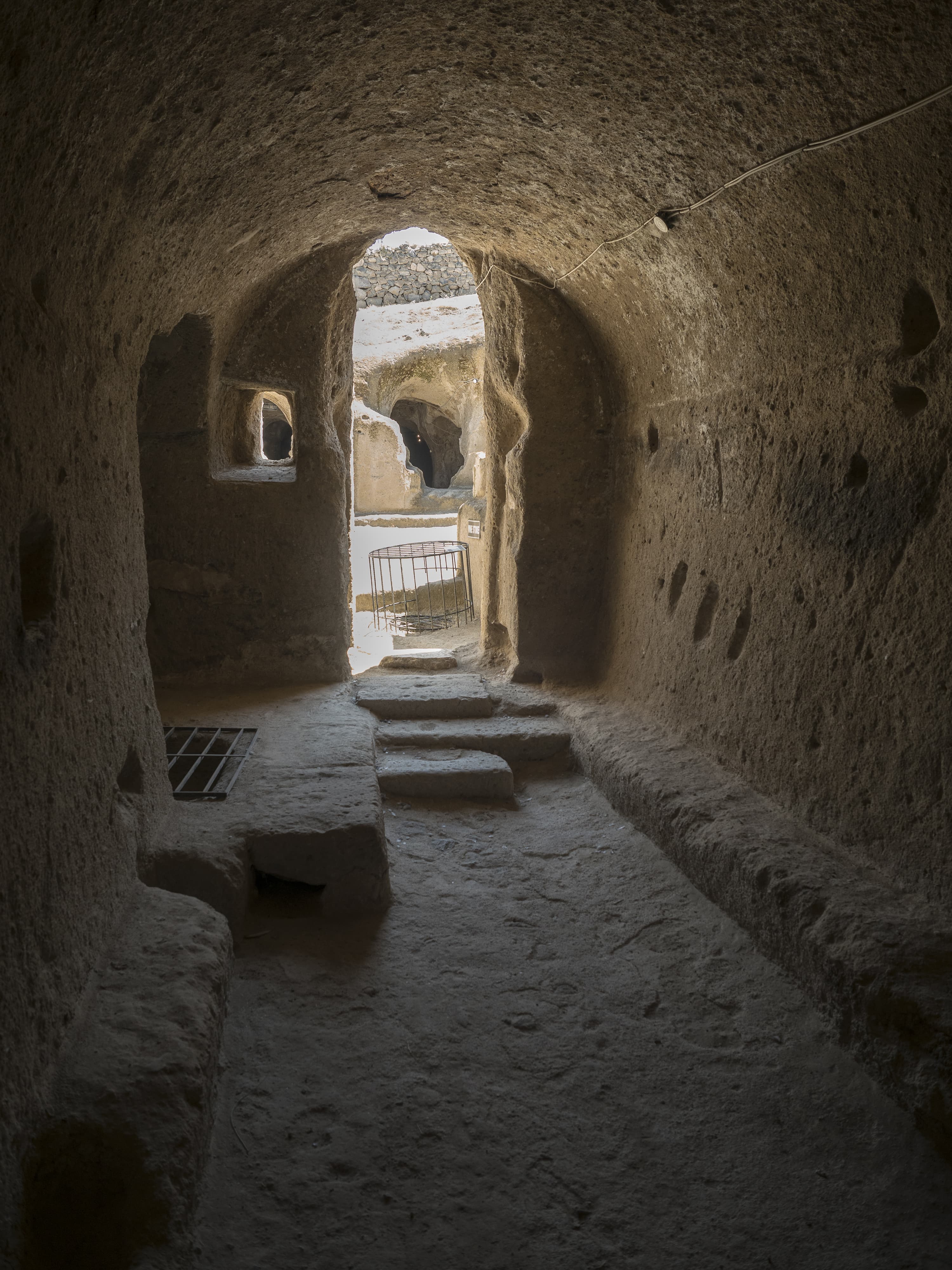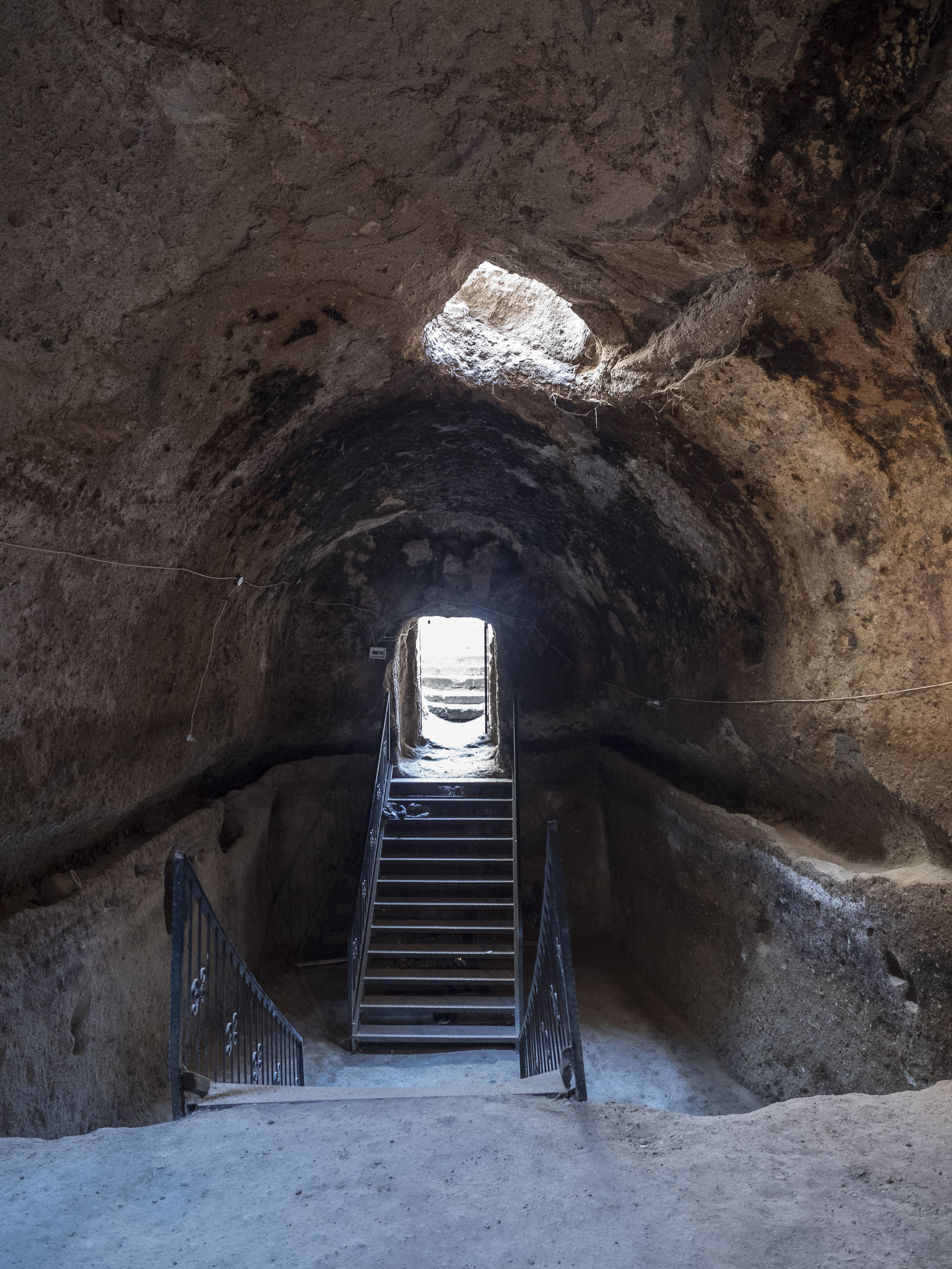 Отметим хорошую работу матрицы камеры, которая смогла воспроизвести мельчайшие детали в густой тени на камнях, и направимся в Газиэмир, подземный город, служивший, как и пещерные церкви, укрытием для древних христиан.