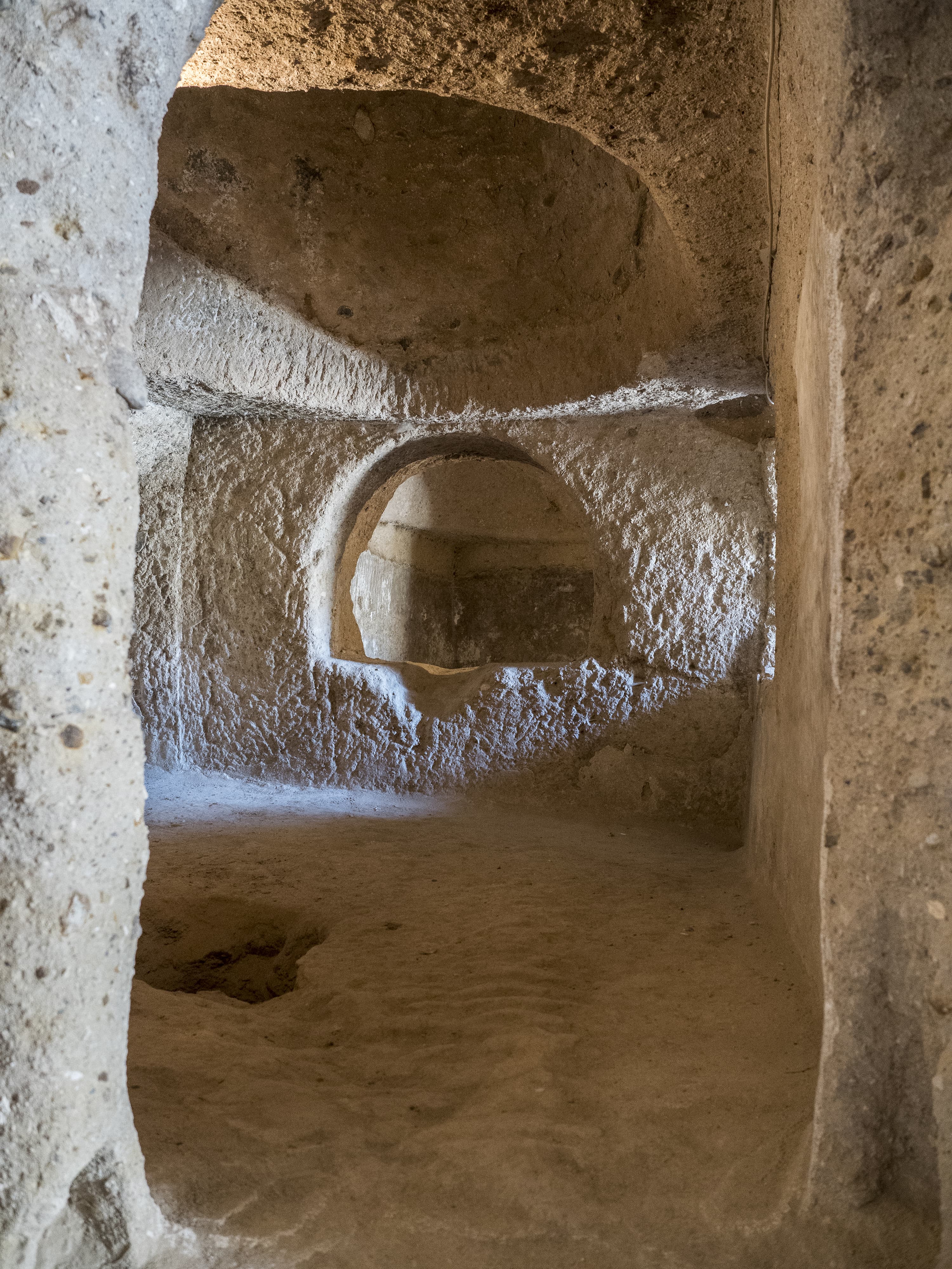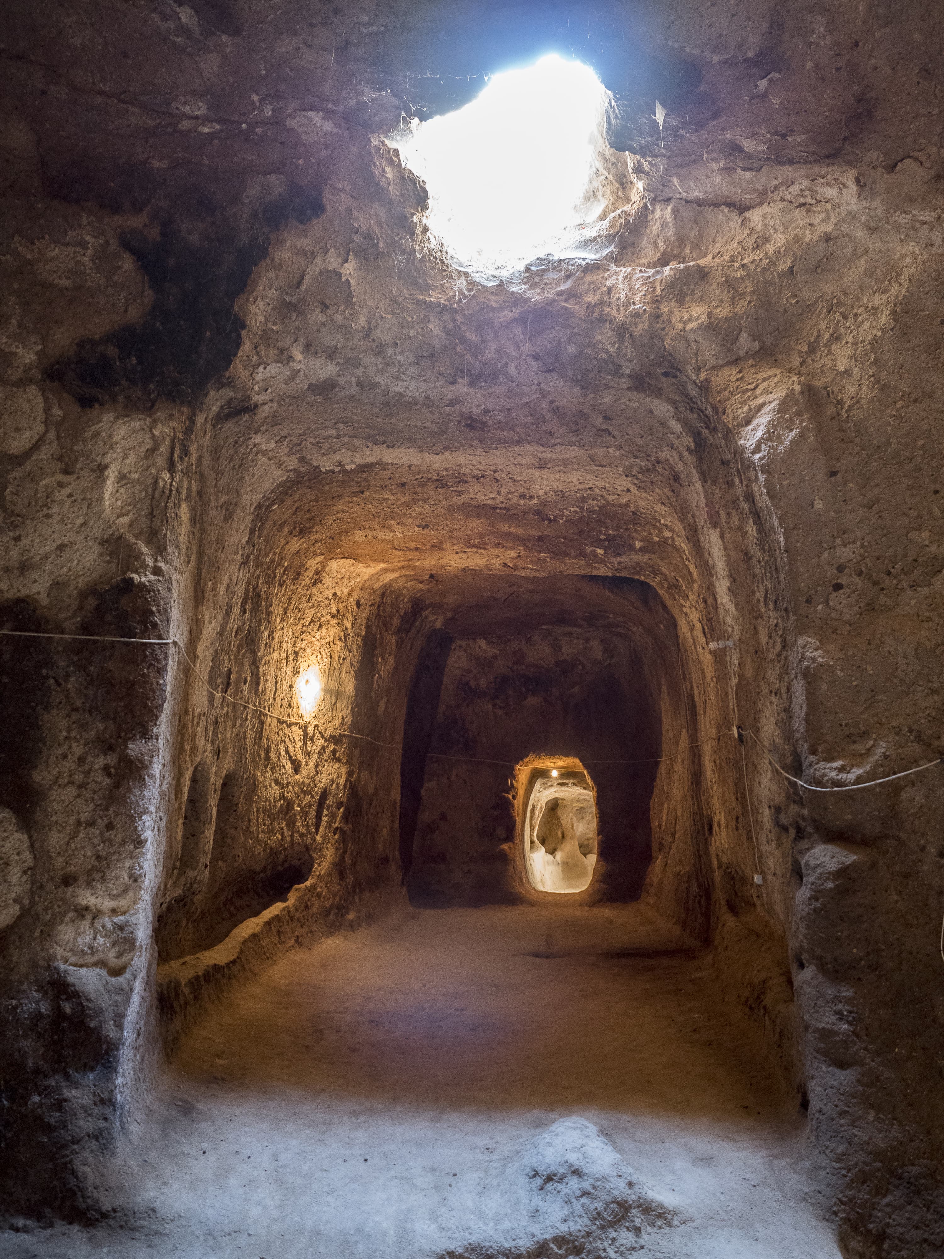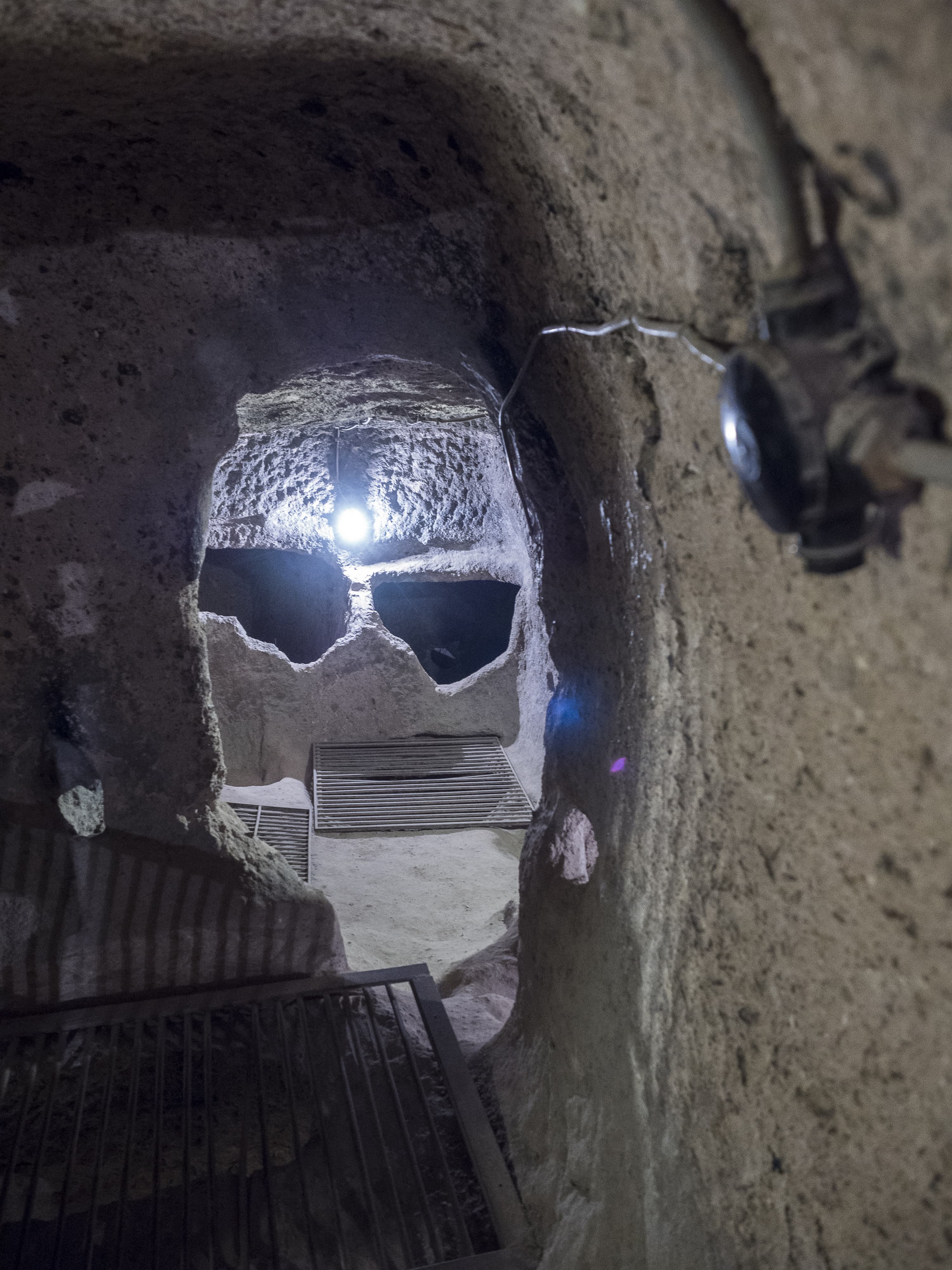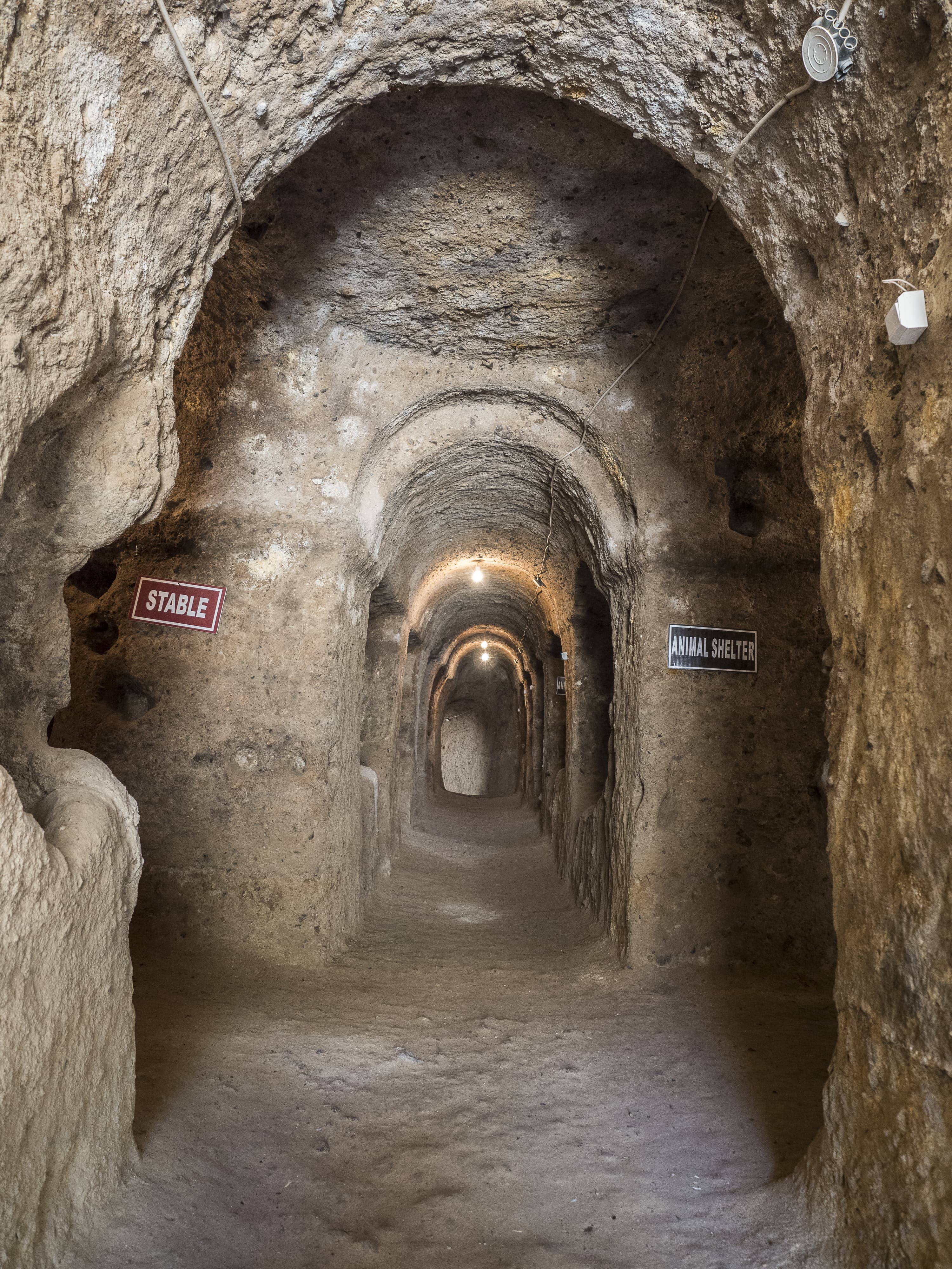 Отметим хорошую работу матрицы камеры, которая смогла воспроизвести мельчайшие детали в густой тени на камнях, и направимся в Газиэмир, подземный город, служивший, как и пещерные церкви, укрытием для древних христиан.