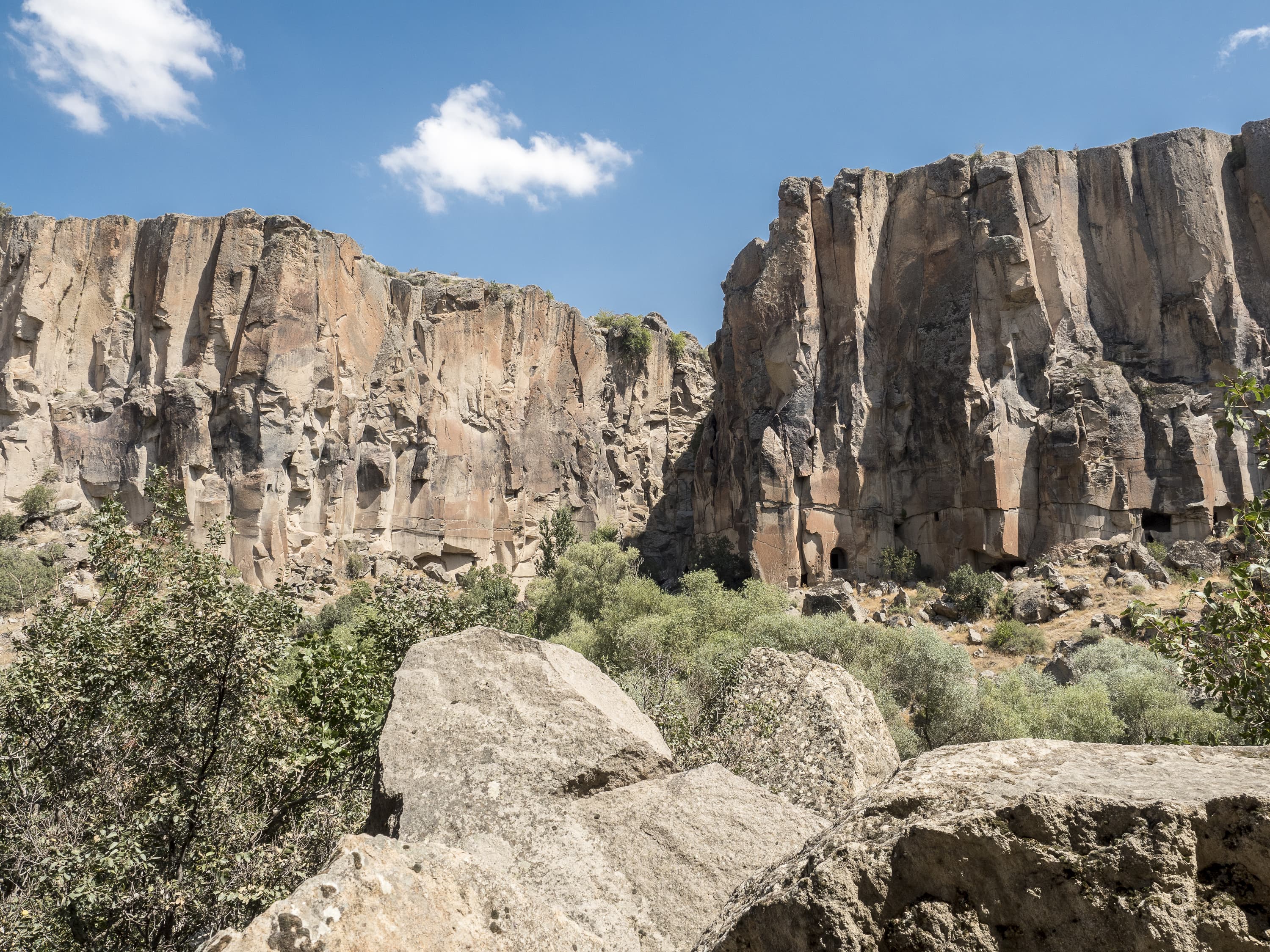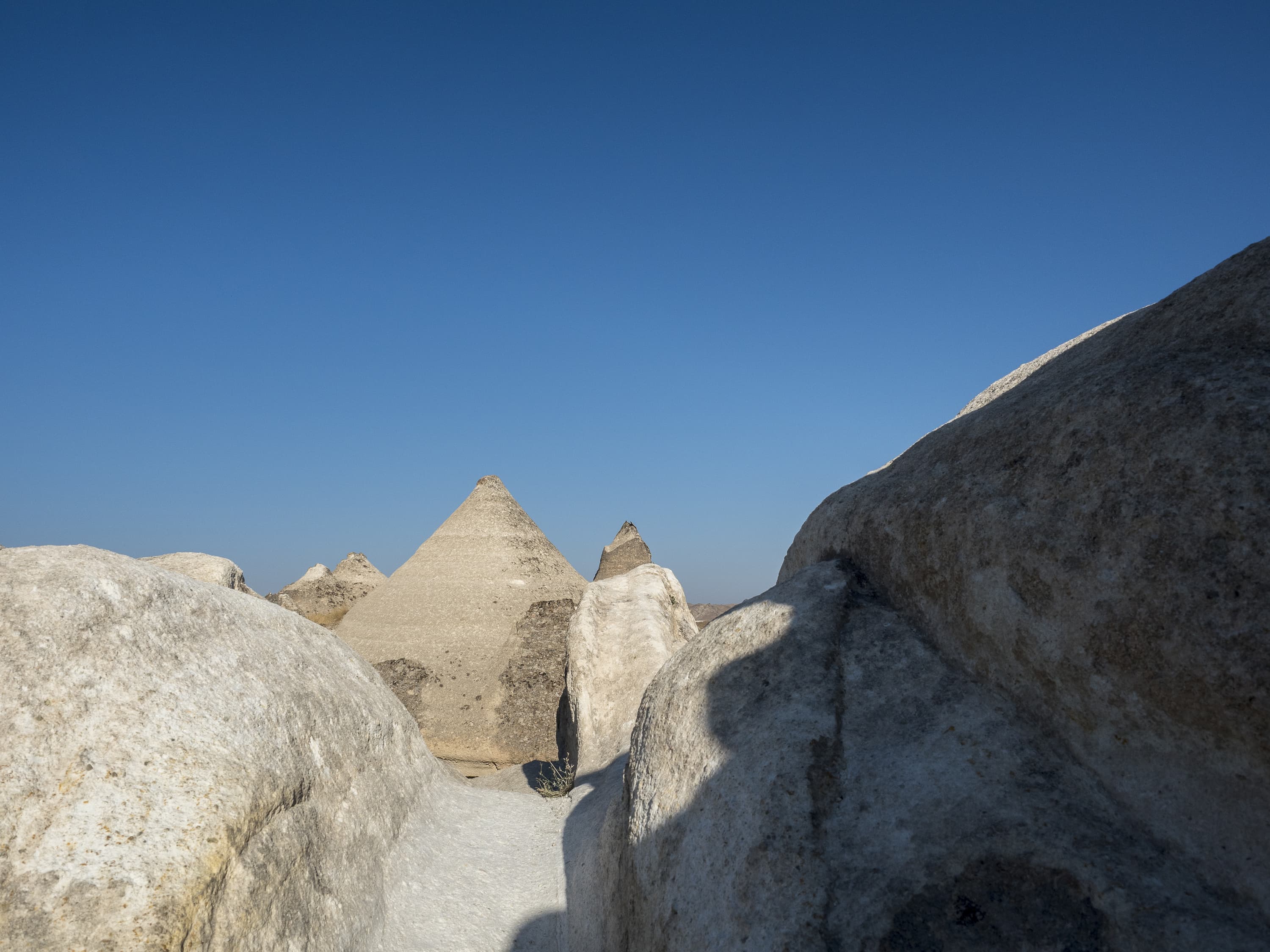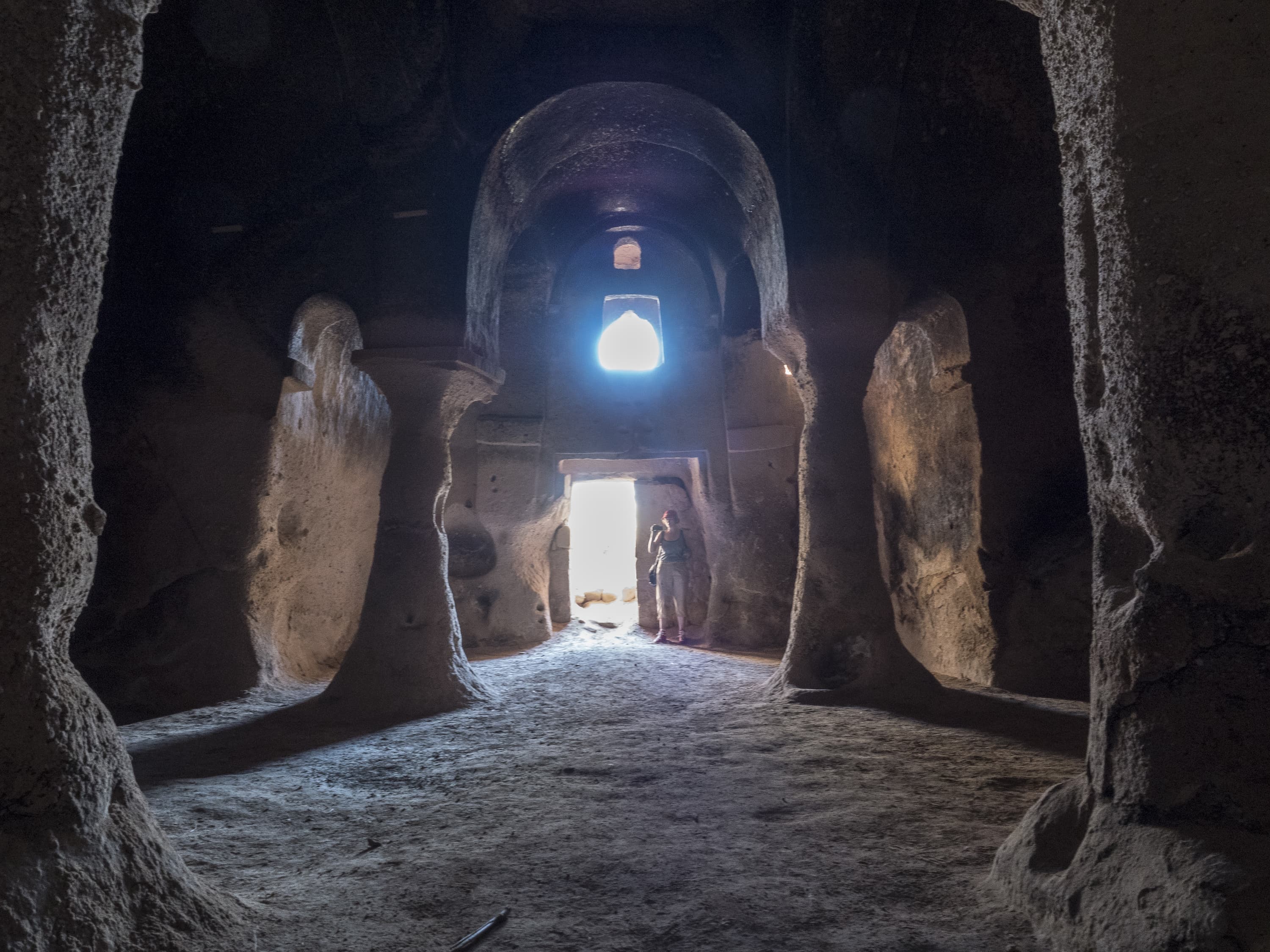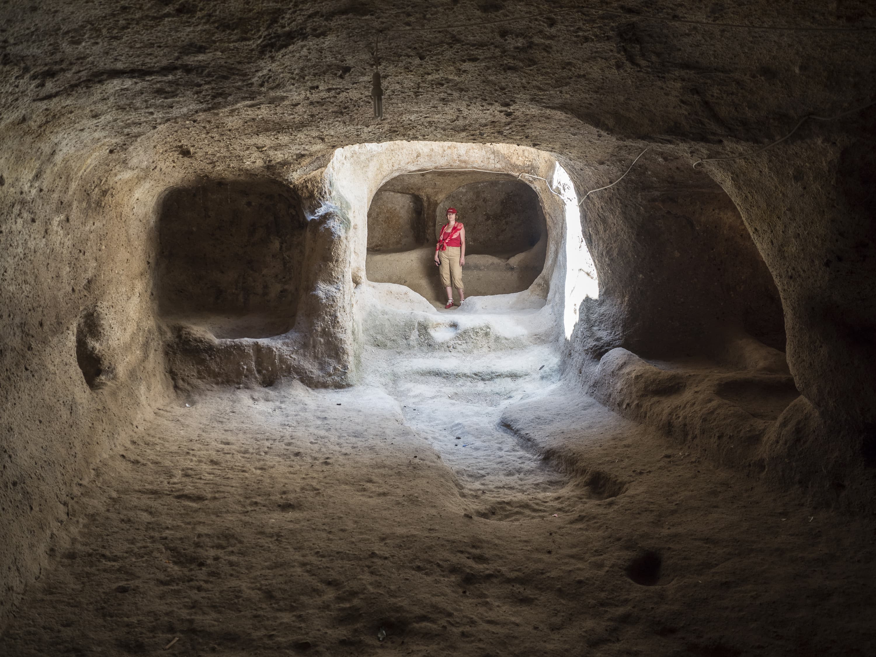 Отметим хорошую работу матрицы камеры, которая смогла воспроизвести мельчайшие детали в густой тени на камнях, и направимся в Газиэмир, подземный город, служивший, как и пещерные церкви, укрытием для древних христиан.