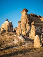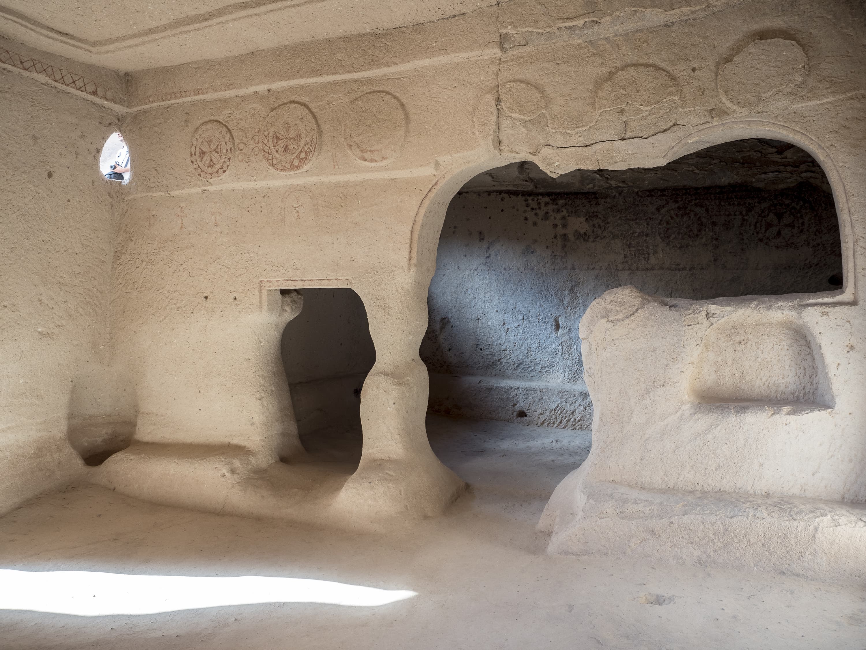 Для археологов тут непочатый край работы, ибо глубина «копания» предмета сильно хромает. А с датировкой построек дело обстоит и вовсе неважно: есть только разрозненные данные о том, что первые поселенцы появились здесь еще во времена неолита, затем стали обустраиваться фригийцы, а в I—IV вв. н. э. — «окапываться» древние христиане. Сначала они прятались в Каппадокии от Рима, потом от Византии, арабских завоевателей и Оттоманской империи.