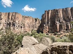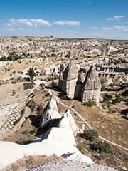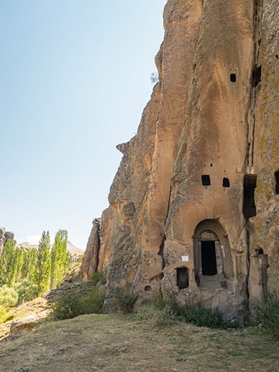 Путешествие по Каппадокии было удобно начинать с Гюзельюрта — небольшого селения на горе у южных ворот ущелья Ыхлара. Кстати, «гюзель юрт» по-турецки означает «любимый дом». Ниже этого поселка, у подножия окрестных гор, расположена Монастырская долина — горная местность, полная древних церквей, человеческих жилищ, хлевов для скота, конюшен, мастерских и других помещений, которые частично занимают пещеры, а частично — залы, вырубленные в камне. Некоторые из них и доселе используются местным населением по назначению, например как склады, сыроварни и винодельни.