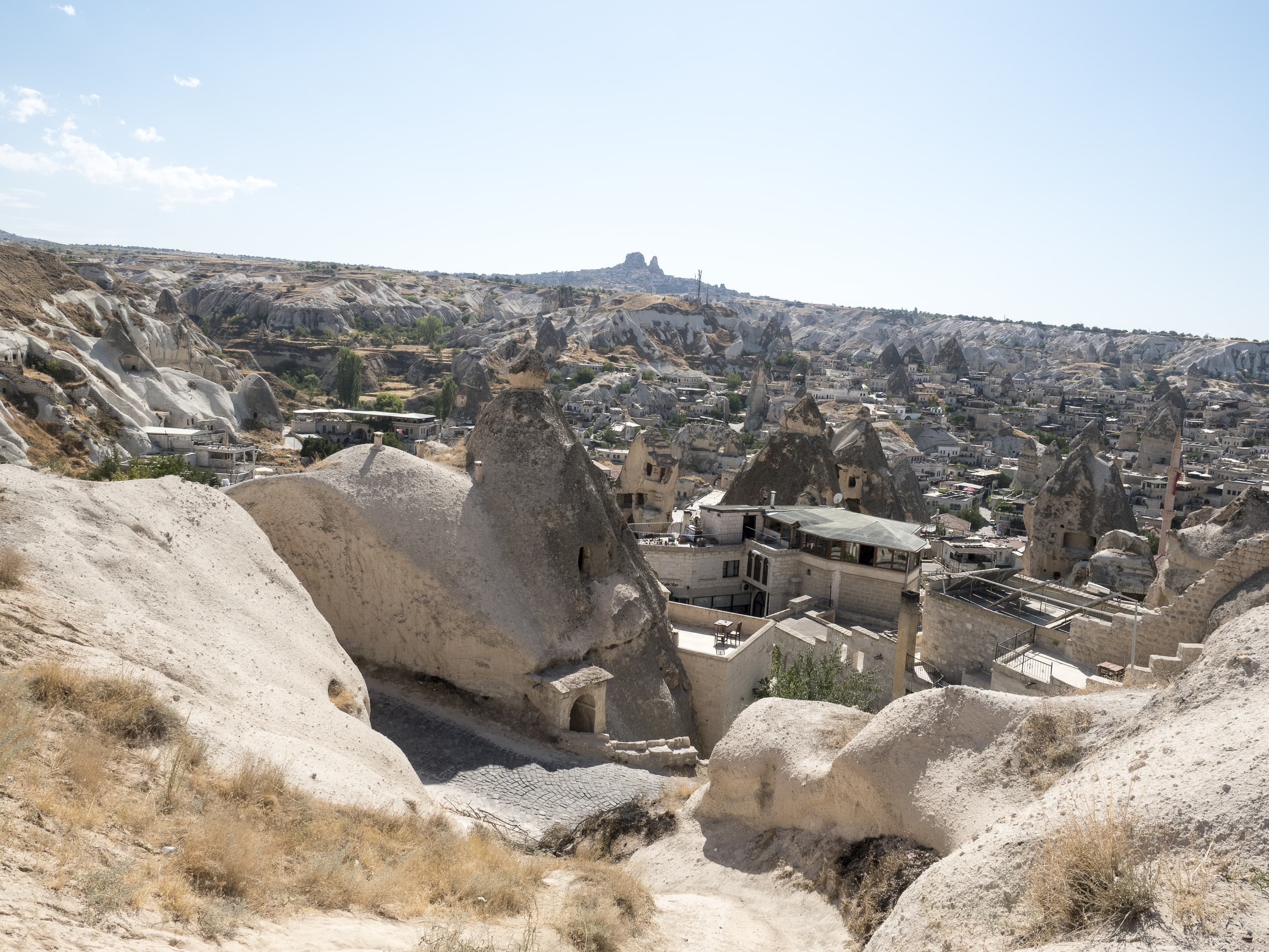 Собственно, городок Гёреме, где мы поселились (точнее, его старая часть), представляет собой вот такой термитник: в горах вырублены пещеры, в которых расположены гостиницы, кафе, мастерские, склады и проч.