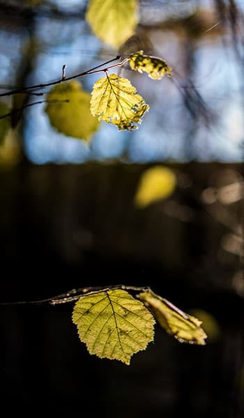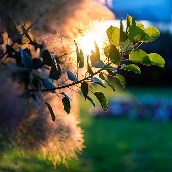 Еще один пример работы в контражуре, уже помягче и полегче. Взгляните на рисунок жилок на листьях и на приятное бокэ — вот пример чудесной работы оптики!