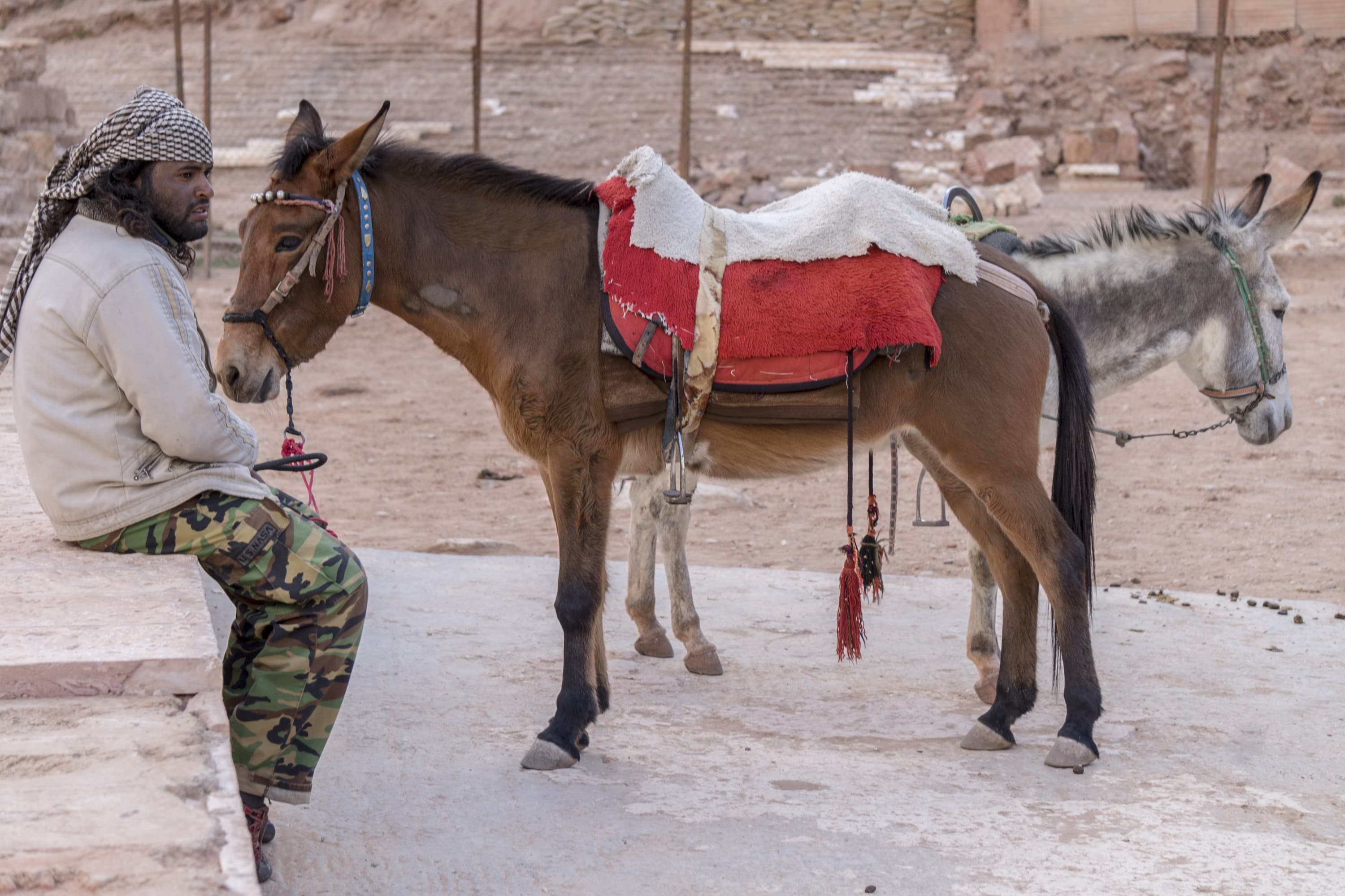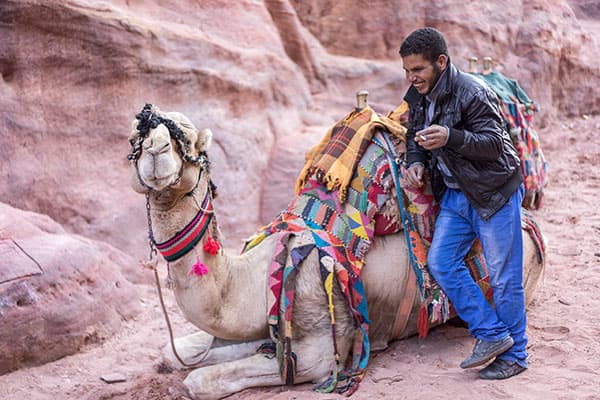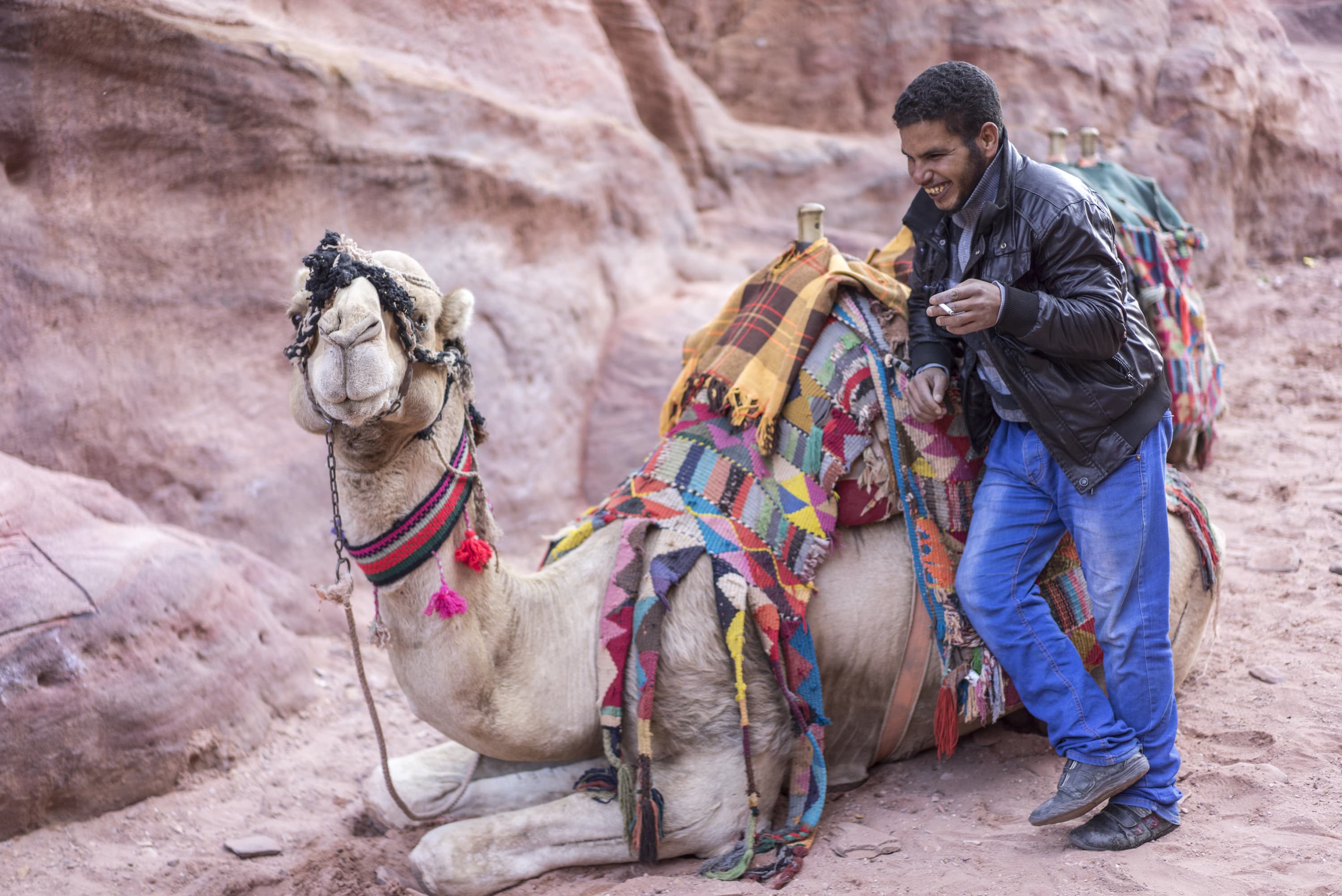 Кадр сделан в самом начале пути в Эль-Дейр, или Монастырь, в Петре (провинция Ма-Ан), Иордания, тоже в пасмурную погоду. Фокус — на губах верблюда. Здесь обращает на себя внимание знаменитый фон камней Розовой столицы Набатейского царства и тот же «выскакивающий» из картинки цайссовский цвет.
