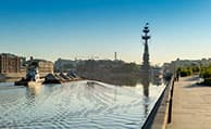 Меняя зону резкости, можно «крутить» сценой как угодно. Вот примеры съемки одного места — здания мэрии Москвы, ранее — СЭВ (Совета экономической взаимопомощи стран-участниц Варшавского договора), — сделанные с интервалом в 20 минут (я просто спустился с моста на набережную). Объектив на максимальном раскрытии, ISO 100, съемка с рук.