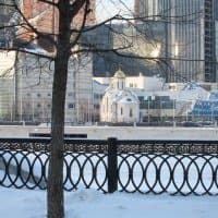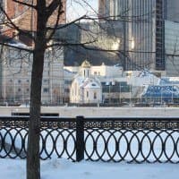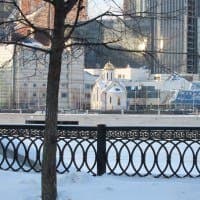 При минимальном ФР заметно, что АФ «привязан» к ближайшему плану: в зону резкости попадает парапет набережной и ствол дерева на аналогичной дистанции от устройства. Поскольку в устройстве нет ручной фокусировки, нет и возможности поправить АФ, переместив его на нужный объект. При 400 мм заметно «гуляние» зоны резкости, которое, правда, в значительной мере маскируется артефактами сжатия и шумоподавления. «Звенящей» резкости добиться нельзя, и виной тому совокупное влияние многих факторов. При эквивалентном ФР 800 мм (это уже цифровое увеличение оптического отображения сцены при 400 мм) автоматика явно затрудняется с выбором фокусировочной зоны, которая постоянно перемещается. Доподлинно указать на истинного виновника весьма сложно, поскольку акварелизация картинки и ее размытие вносят свою лепту в итоговый результат.