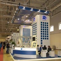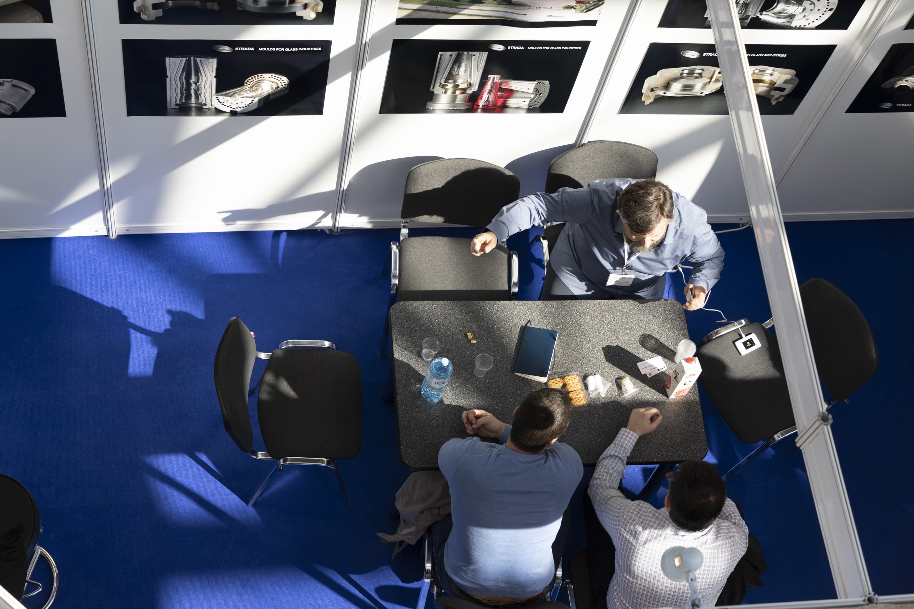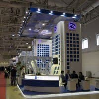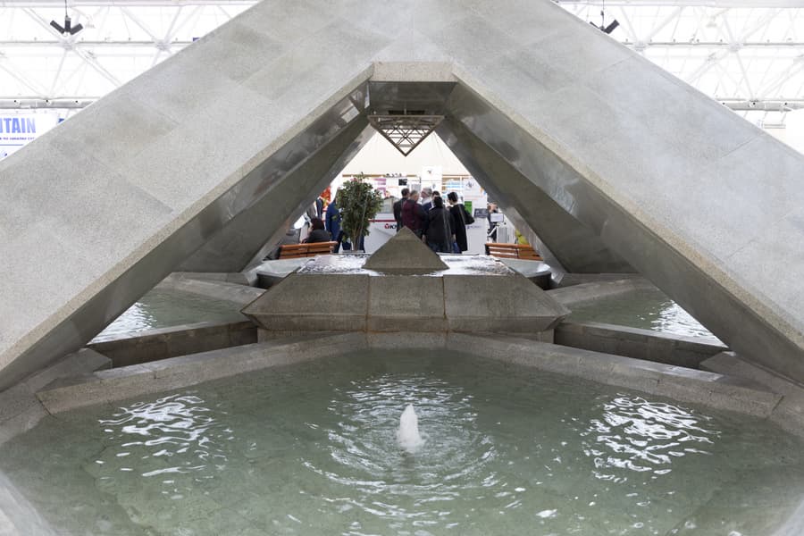 В приведенном примере охват сцены достаточно велик, поскольку зум-объектив использован в широкоугольном положении (24 мм). В подобной ситуации фигура докладчика довольно мелка, и ее трудно сделать сюжетным центром композиции. Поэтому есть смысл подчеркнуть тематику доклада (или всего мероприятия), тем более что баннеры, уведомляющие о деталях, хорошо различимы. Можно также намекнуть на то, что в зале отнюдь не аншлаг, и большинство зрительских мест пустует. Посмотрим, что даст нам использование Canon Speedlite 470EX-AI.