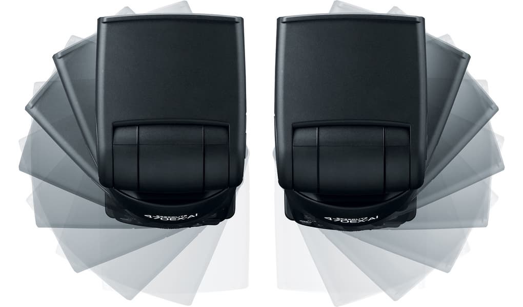 При перекидывании камеры вертикально (для съемки в портретной ориентации) и обратно в горизонтальное («пейзажное») положение Canon Speedlite 470EX-AI автоматически изменит положение осветительной головки, сохранив оптимальный угол отражения от потолка для обеспечения наилучшего освечивания снимаемой сцены.