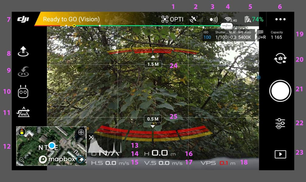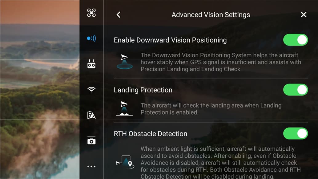 - датчики визуального позиционирования предотвращают столкновения с препятствиями и обеспечивают возможность их облета