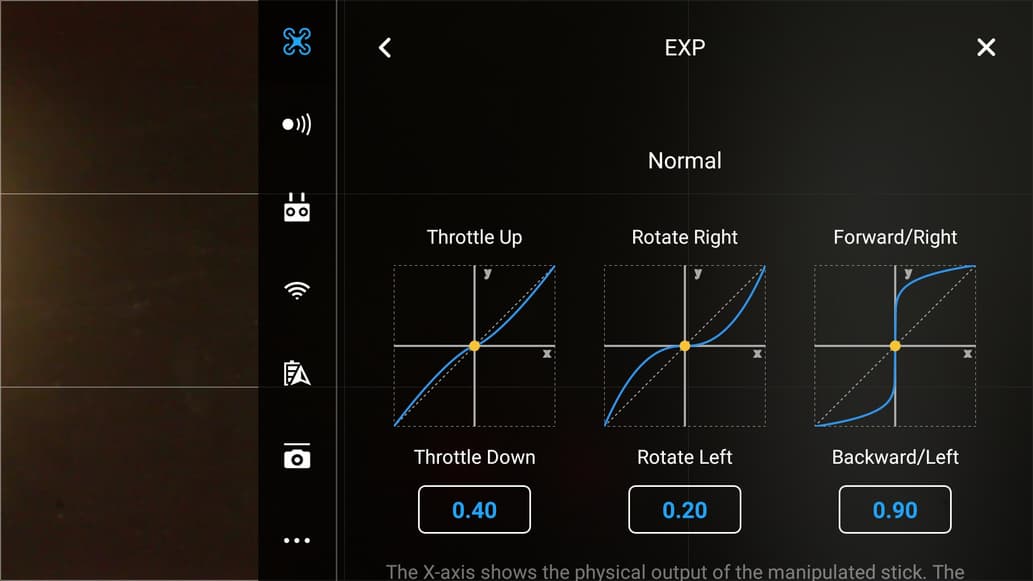 | Максимальная скорость полета (на уровне моря в штиль) | режим S: 68,4 км/ч (19 м/с); режимы P и Wi-Fi: 28,8 км/ч (8 м/с) |