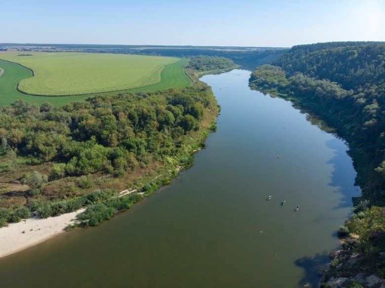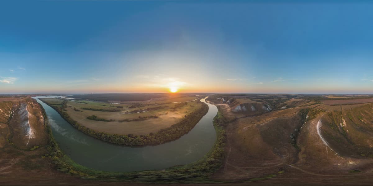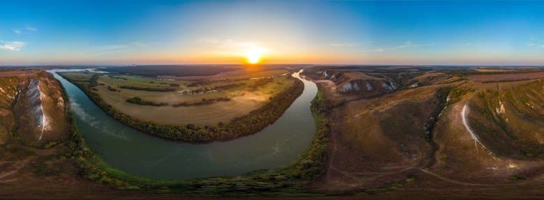Главная беда панорамных изображений, сшитых автоматикой DJI Mavic Air, состоит в скверной подгонке кадров по тональной плотности. Обратимся к первому примеру. Это долина Дона у села Сторожевое (Острогожский район Воронежской области).