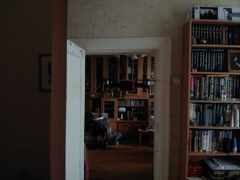 Вновь, как и на других снимках, приведенных выше, хорошо заметна бочкообразная дисторсия. Параллельно выясняется интересная подробность: автоматика запускает экспобрэкетинг, не пытаясь изменять значение ISO, а управляя только длительностью выдержки. Одновременно выясняется, что подвес обеспечивает адекватную стабилизацию при выдержке 1/4 с (3 ступени экспозиции).