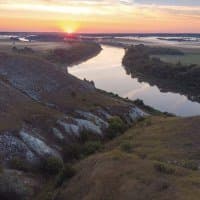 Даже в режиме нехитрого ручного пилотирования видеосъемка демонстрирует неоспоримые преимущества перед статичной картинкой. Рассвет над долиной Дона у меловой горы Острый Борок. Село Сторожевое. Воронежская обл. Full HD (1920×1080 30p).