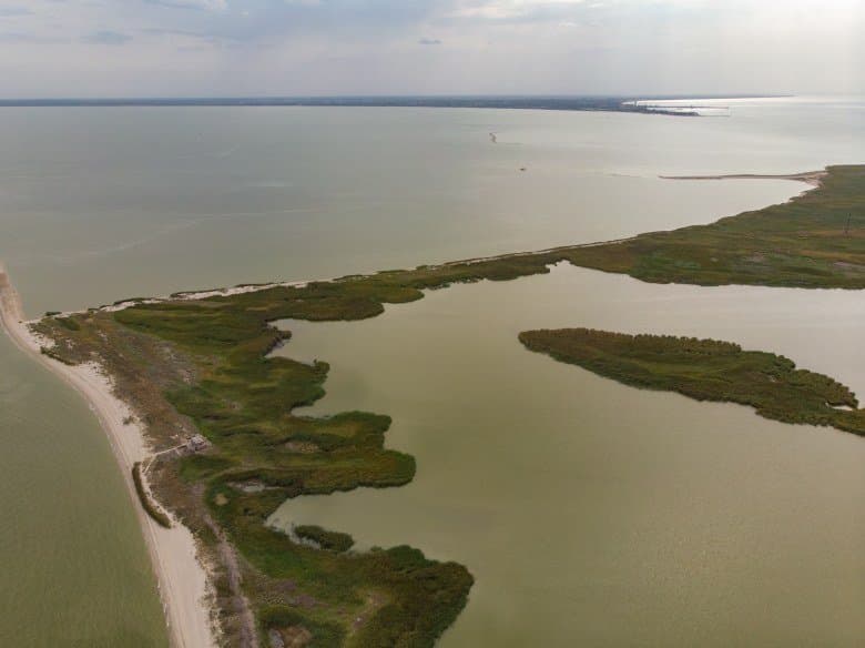 Еще один пример — Зеленый остров, или остров Семи ветров. Это отделенная водой Азовского моря часть Ейской косы (Краснодарский край). Первая картинка — автопанорама из Mavic Air, вторая — «проявленные» в Adobe Camera RAW файлы, сшитые затем при помощи Kolor Autopano Giga.